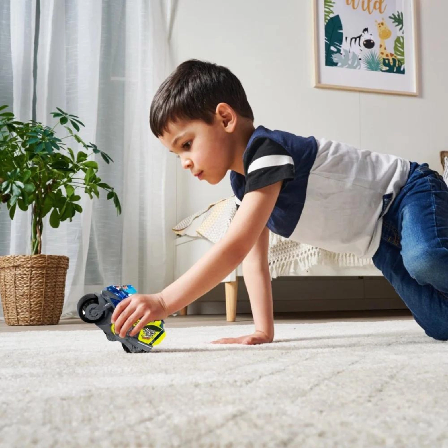 Mechanizm inercyjny: Dzięki mechanizmowi inercyjnemu, motocykl policyjny oferuje realistyczne wrażenia z jazdy, umożliwiając dzieciom łatwe manewrowanie i kontrolę nad pojazdem. Opony wykonane z elastycznej gumy zapewniają lepszą przyczepność i stabilność na różnorodnych powierzchniach, dodając autentycznego wyglądu pojazdowi służb mundurowych. Dzięki wbudowanemu mechanizmowi inercyjnemu motocykl może poruszać się bez dodatkowego pchania, co zapewnia płynną i realistyczną jazdę. To nie tylko ułatwia zabawę, ale także daje dzieciom poczucie kontroli nad pojazdem, co z kolei rozwija ich umiejętności motoryczne i koordynację ruchową.