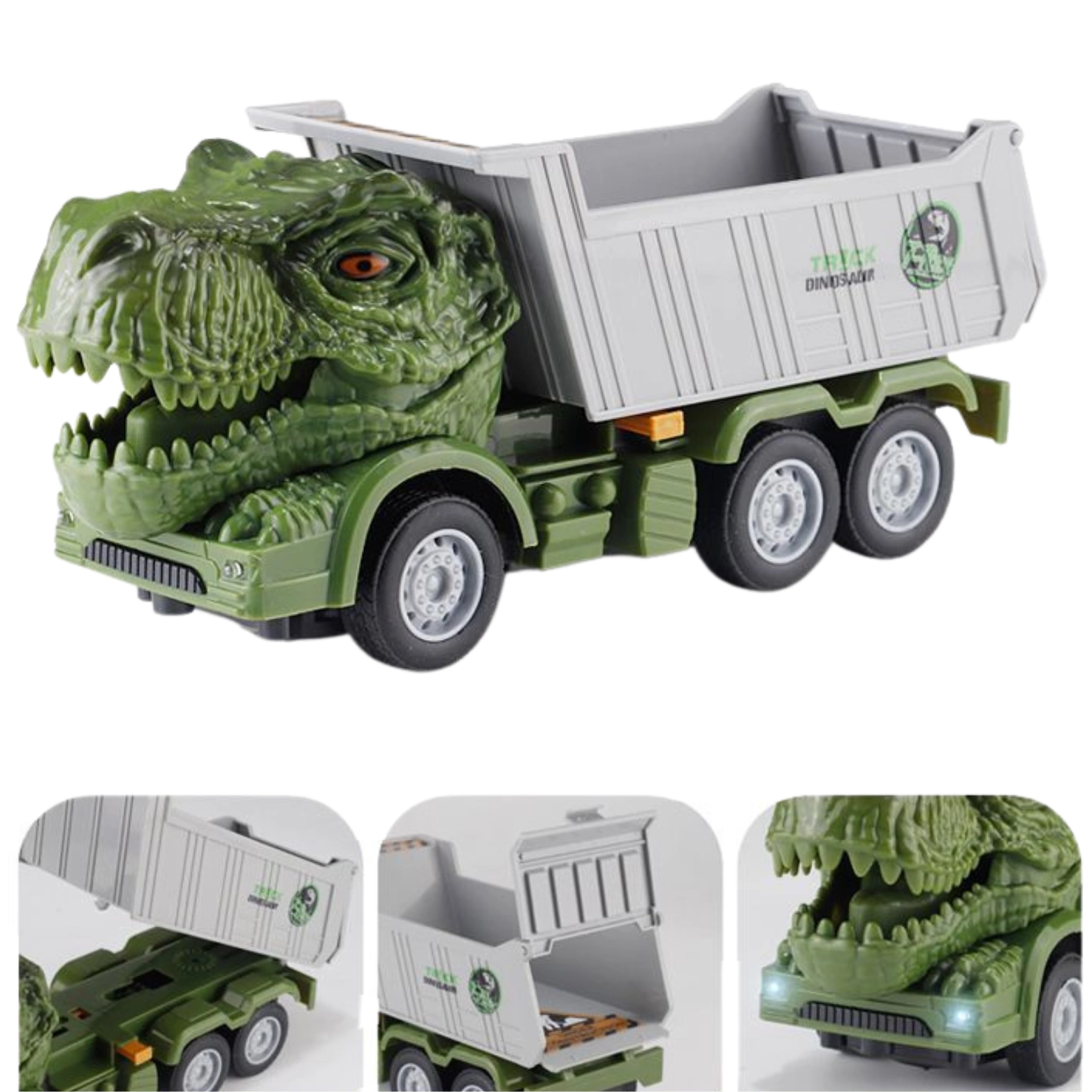 Ciężarówka wywrotka to prawdziwa rewolucja w świecie zabawek. Zamiast zwykłej kabiny, mamy kabinę w kształcie głowy dinozaura. To nie tylko oryginalny design, ale także źródło niekończącej się zabawy i przygód. Lampy, które znajdują się w przedniej części kabiny świecą, co jest świetną funkcją dla tych, którzy uwielbiają bawić się w ciemności!
