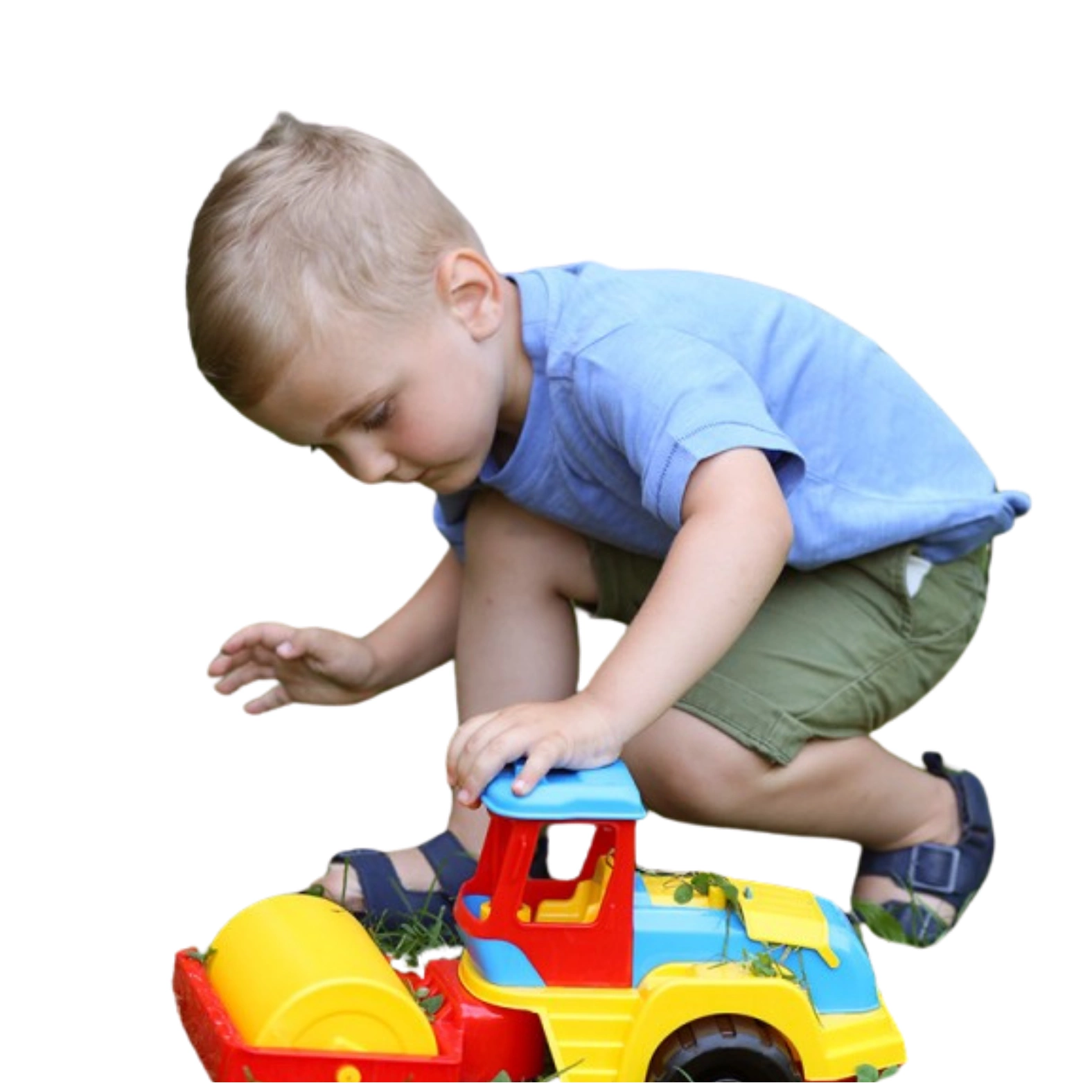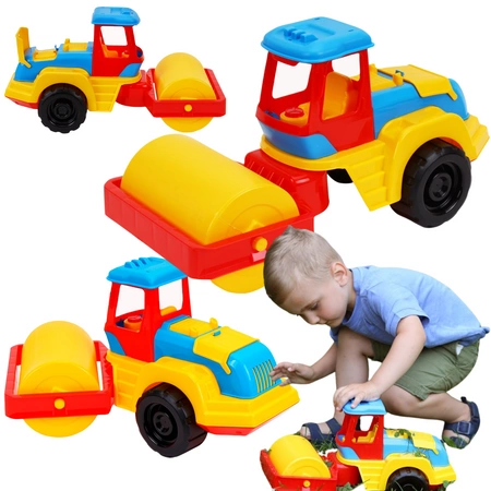 Ciągnik z walcem to interaktywna zabawka, która rozwija wyobraźnię i zdolności manualne u małych inżynierów. Pojazd ten zachęca do zabawy na świeżym powietrzu w piaskownicy, ogrodzie, placu zabaw, czy też w pokoju dziecięcym.