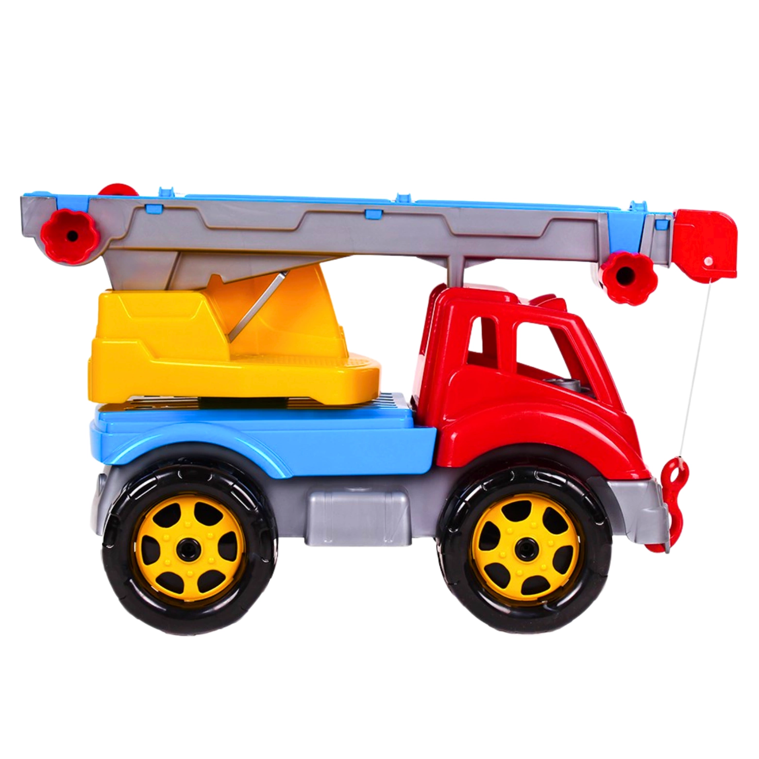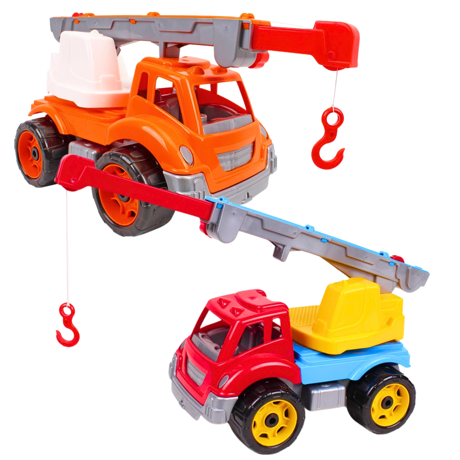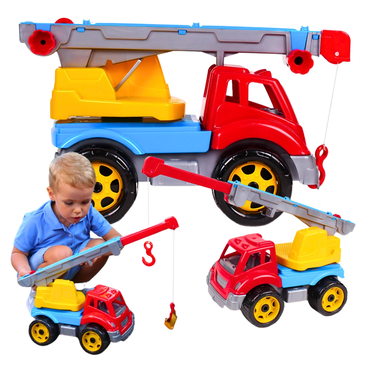 Ta ciężarówka wyposażona jest w dźwig, który, jak prawdziwy, może podnosić obiekty. Hak jest umieszczony na rozwijającym się sznurku, a całość znajduje się w regulowanym żurawiu. Autko wykonane jest z najlepszych tworzyw, więc zapewnia zabawę przez długi czas, a dodatkowo odporne jest na wszelkie warunki, więc można zabrać zabawkę ze sobą nawet na zewnątrz. Utrzymane zostały intensywne kolory, które przyciągają wzrok. Dzięki zabawie z pojazdami dziecko zdobywa umiejętności motoryczne i kreatywne.