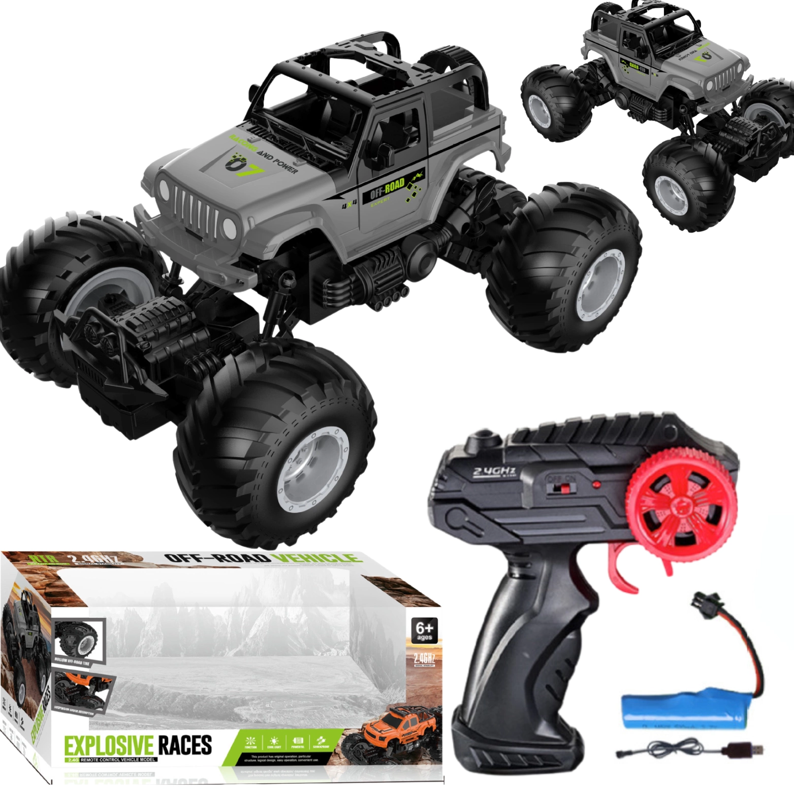 Pilot RC: Sterowanie tym wspaniałym pojazdem odbywa się za pomocą pilota zdalnego sterowania. Pilot pozwala na precyzyjne kierowanie w każdym kierunku, co daje pełną kontrolę nad jego ruchem.