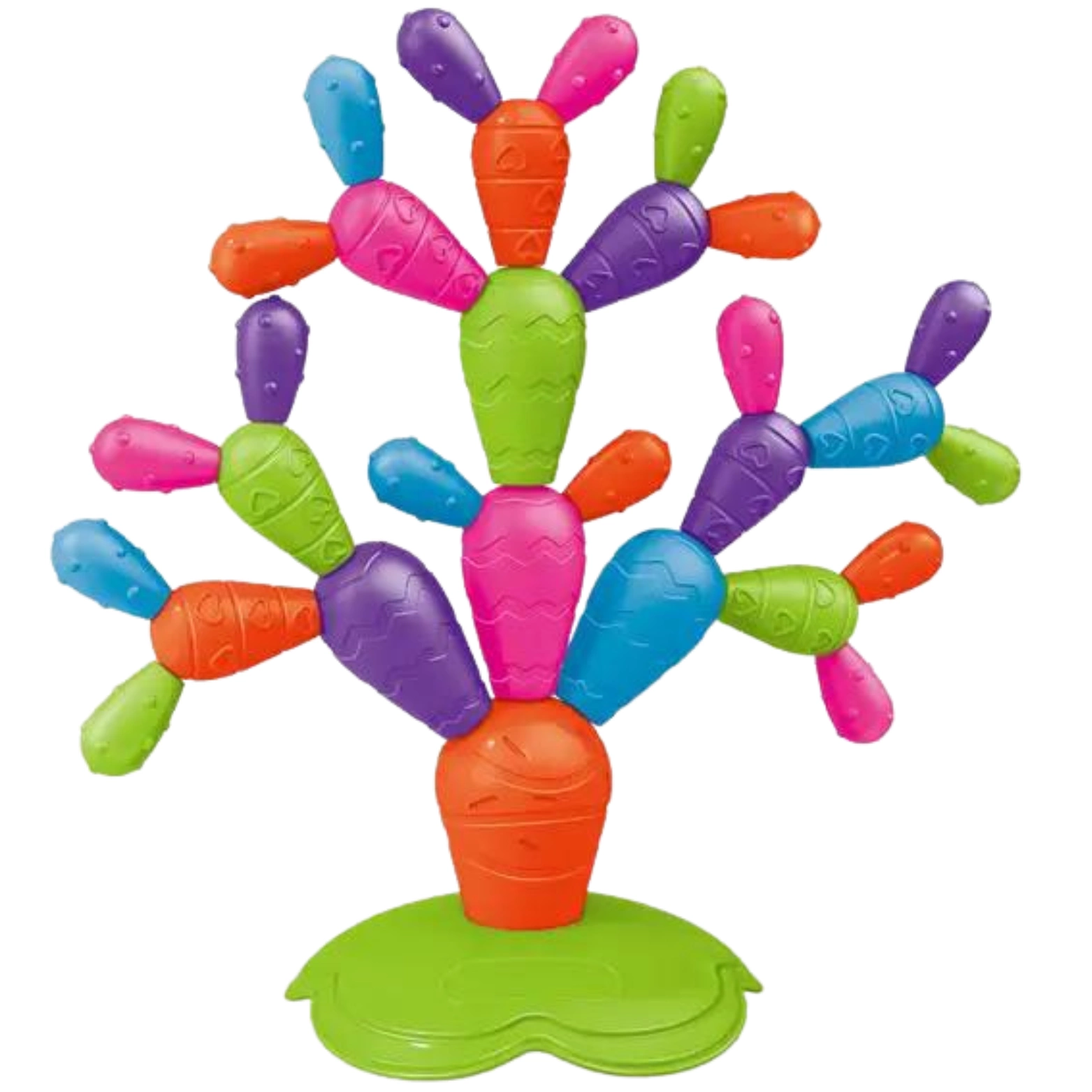 Kształt wieży przypominający kaktusa dodaje dodatkowej atrakcyjności tej zabawce. Maluch może eksplorować różne możliwości układania klocków, tworząc wyjątkowe i kolorowe kaktusy, co rozwija jego kreatywność i wyobraźnię.