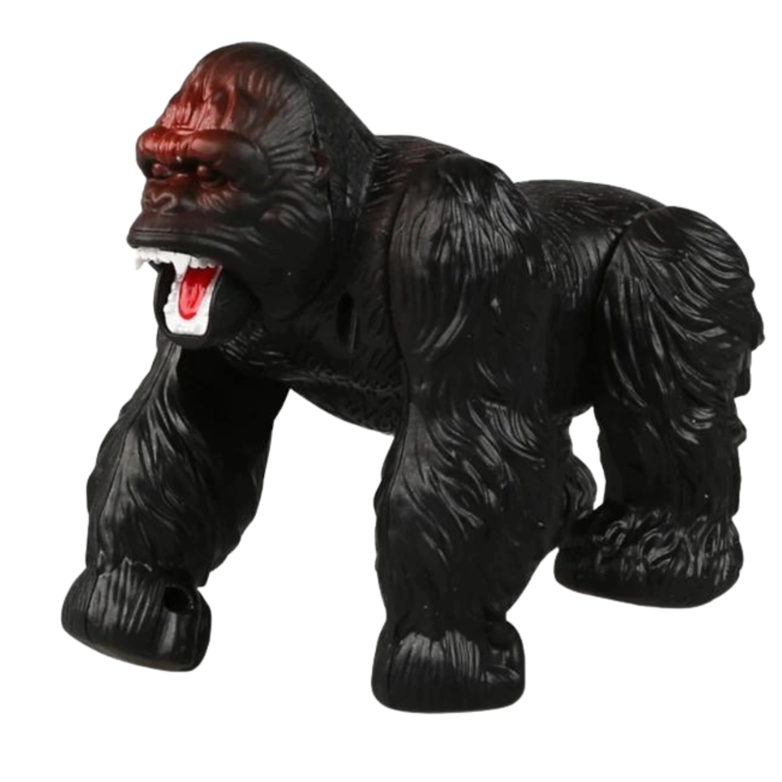 Sterowany radiowo goryl jest niesamowicie podobny do King Konga i wygląda równie onieśmielająco. Postać goryla jest bardzo wyrazista, oczy są żywe, wszystkie części ciała i twarzy są jak prawdziwy pierwowzór, nawet futro wygląda na prawdziwe, chociaż cała figura jest wykonana z tworzywa. Naciskając przyciski dziecko zobaczy, że goryl może chodzić poruszaj ustami i łapami, obracaj głową, wydawaj dźwięki. Zabawa z takimi zabawkami uczy dzieci korzystania z paneli sterowania, rozwijają koordynację ruchów, aktywność motoryczną, zdolności motoryczne, dają wyobrażenie o różnorodności świata zwierząt, pomagają opanować pojęcia „do przodu” i „do tyłu”. Wszystkie elementy w zestawie wykonane są z wysokiej jakości wytrzymałego tworzywa, bezpiecznego dla dziecka.