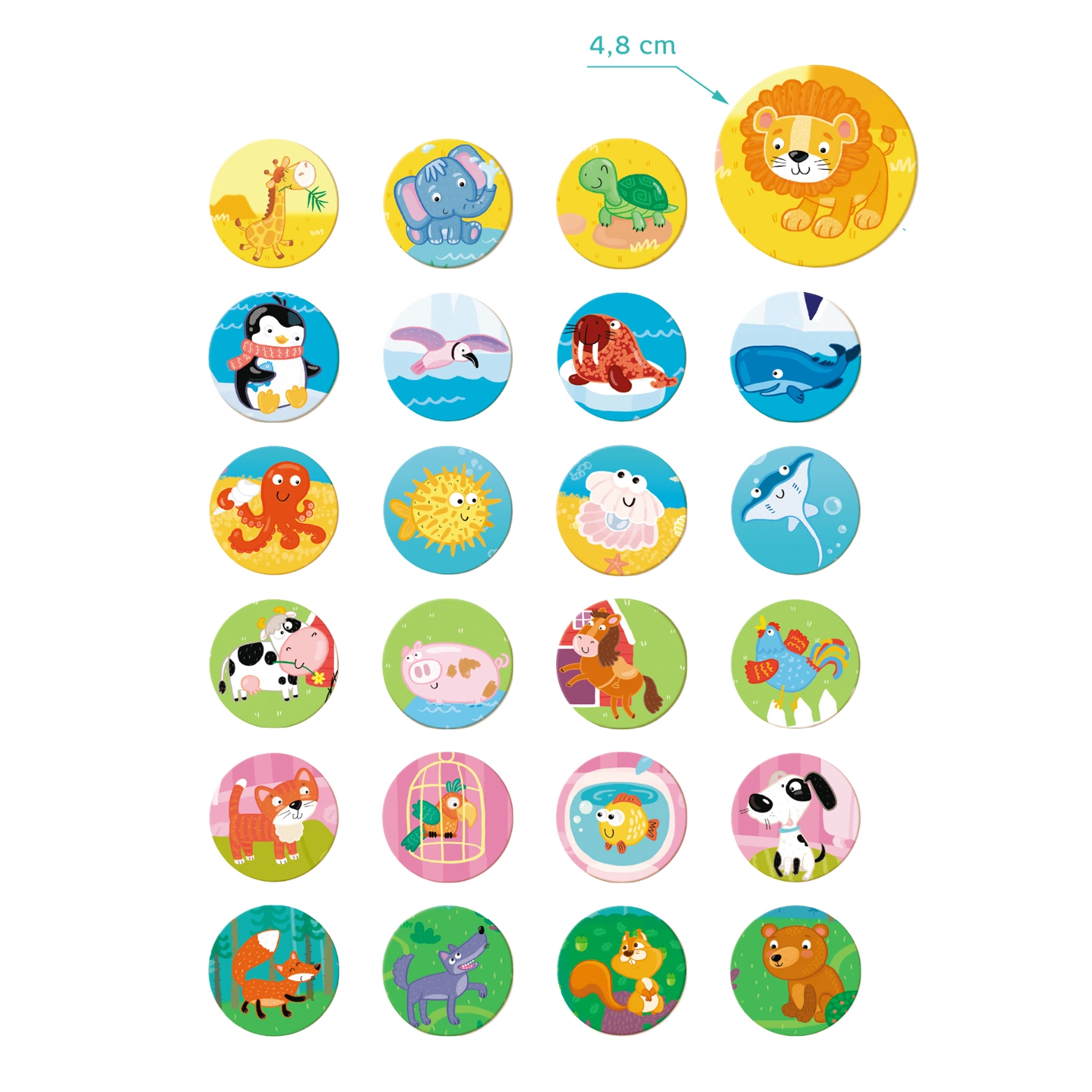 Wykonanie: żetony i karty z obrazkami zwierząt wykonane są z bezpiecznego materiału, co zapewnia długą żywotność gry. Atrakcyjny design i jasne kolory przyciągną uwagę dzieci, zachęcając do edukacyjnej zabawy.