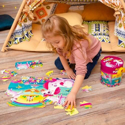 Obrazki przedstawiające jednorożce są pełne kolorów i detali, co zachęca dzieci do eksploracji i odkrywania piękna tego magiczna świata. Zabawa puzzlami rozwija umiejętności motoryczne, ponieważ dzieci muszą precyzyjnie łączyć elementy. Jednocześnie stymuluje ich umiejętność logicznego myślenia i spostrzegawczość.