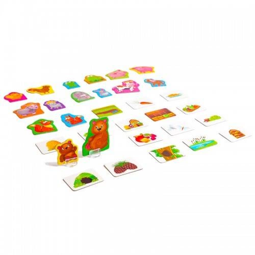 Oglądając karty, dzieci będą miały okazję dowiedzieć się, które zwierzęta mieszkają na farmie, a które w lesie oraz co je charakteryzuje. Ta część gry kształtuje wiedzę o środowiskach życia zwierząt i rozbudza ich ciekawość.