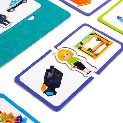 Gra wprowadza dzieci do świata zawodów poprzez zestawy skojarzeniowe. Każdy zawód jest reprezentowany przez jedną figurkę i przedmioty z nim związane. Dzieci mają za zadanie dopasowywać odpowiednie elementy do siebie.
