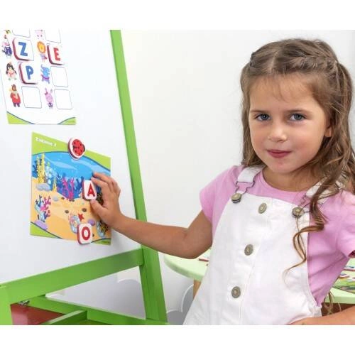 Gra ta została stworzona z myślą o dzieciach, które dopiero rozpoczynają swoją przygodę z językiem angielskim. Zawiera ona magnesy reprezentujące litery alfabetu, co umożliwia maluchom naukę i rozpoznawanie liter w niezwykle interaktywny sposób. Dziecko może tworzyć proste słowa, ćwiczyć wymowę i zrozumieć związek między literami a dźwiękami.