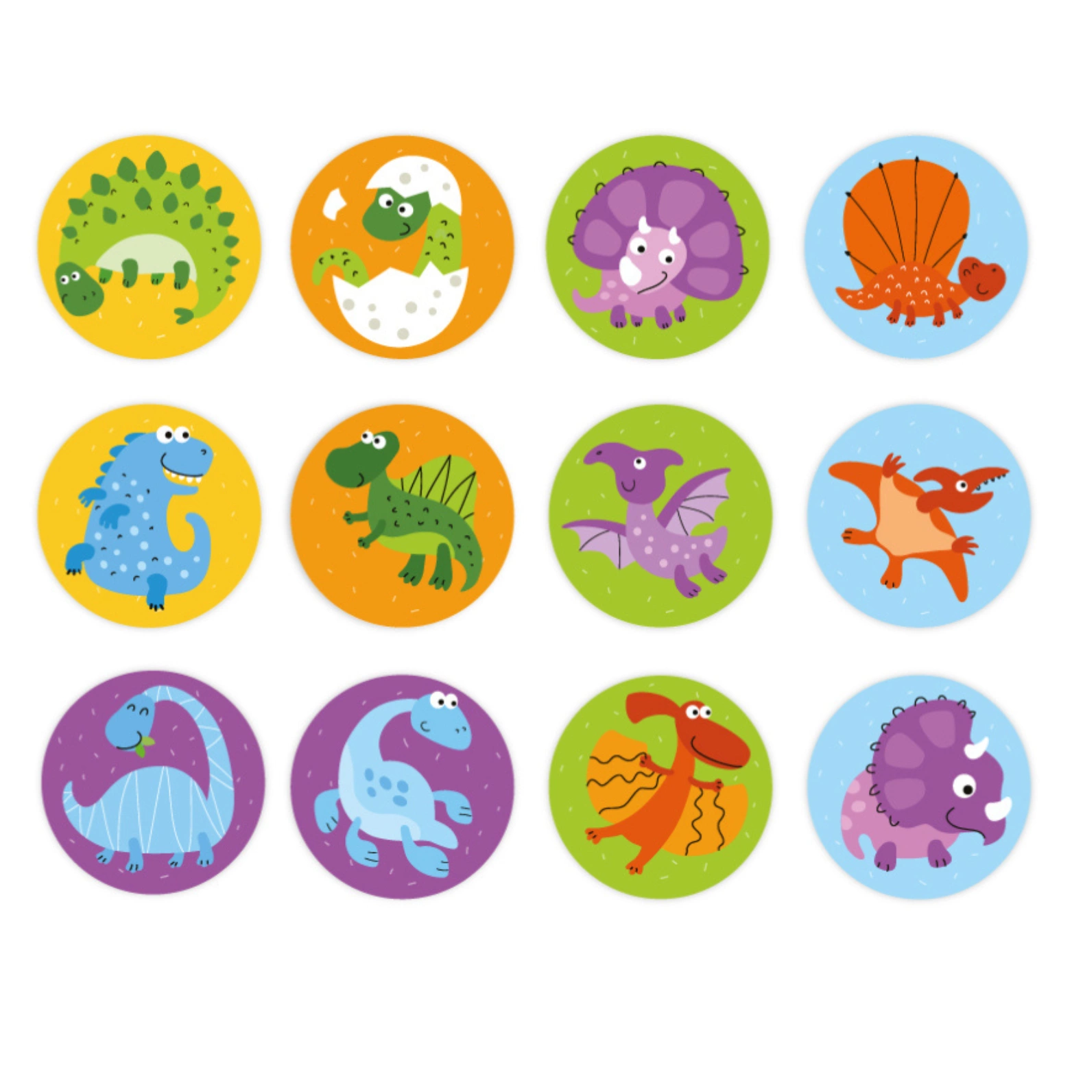 Zestaw zawiera 24 Kartoniki do gry - każda para kartoników przedstawia różne dinozaury, tworząc 12 pasjonujących par.