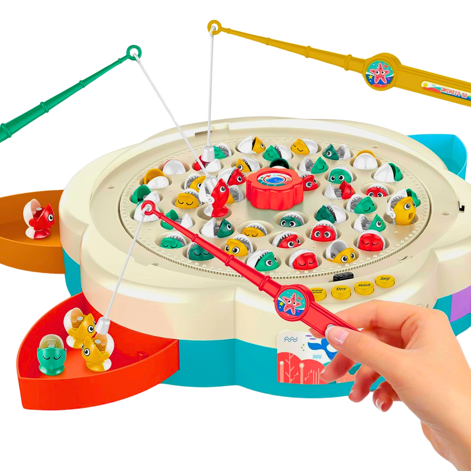 Łowienie rybek: Zabawa w wędkowanie to doskonałe źródło nauki poprzez zabawę. Złapanie rybki w obracającym się stawie, to nie lada wyzwanie i potrzeba do tego umiejętności, które ćwiczone są przy każdym podejściu. Można być mistrzem od razu, lub potrzebować kilku treningów zanim się zwycięży. Każda z tych opcji przynosi wiele rozrywki i uśmiechu. Gra rozwija przede wszystkim zdolności manualne, cierpliwość, koordynację ręka-oko.