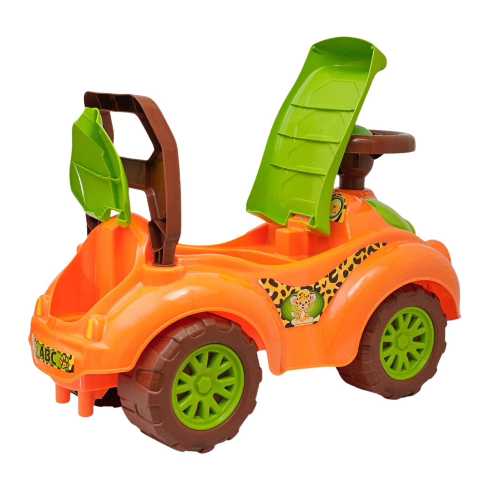Jeździk posiada otwierane siedzisko, tył oraz przód, co pozwala dziecku na przechowywanie innych zabawek lub wybranych przedmiotów. Dzięki temu zabawka pełni funkcję mobilnego schowka. Rozmiary chodzika zostały dostosowane z myślą o wygodzie i bezpieczeństwie najmłodszych użytkowników.