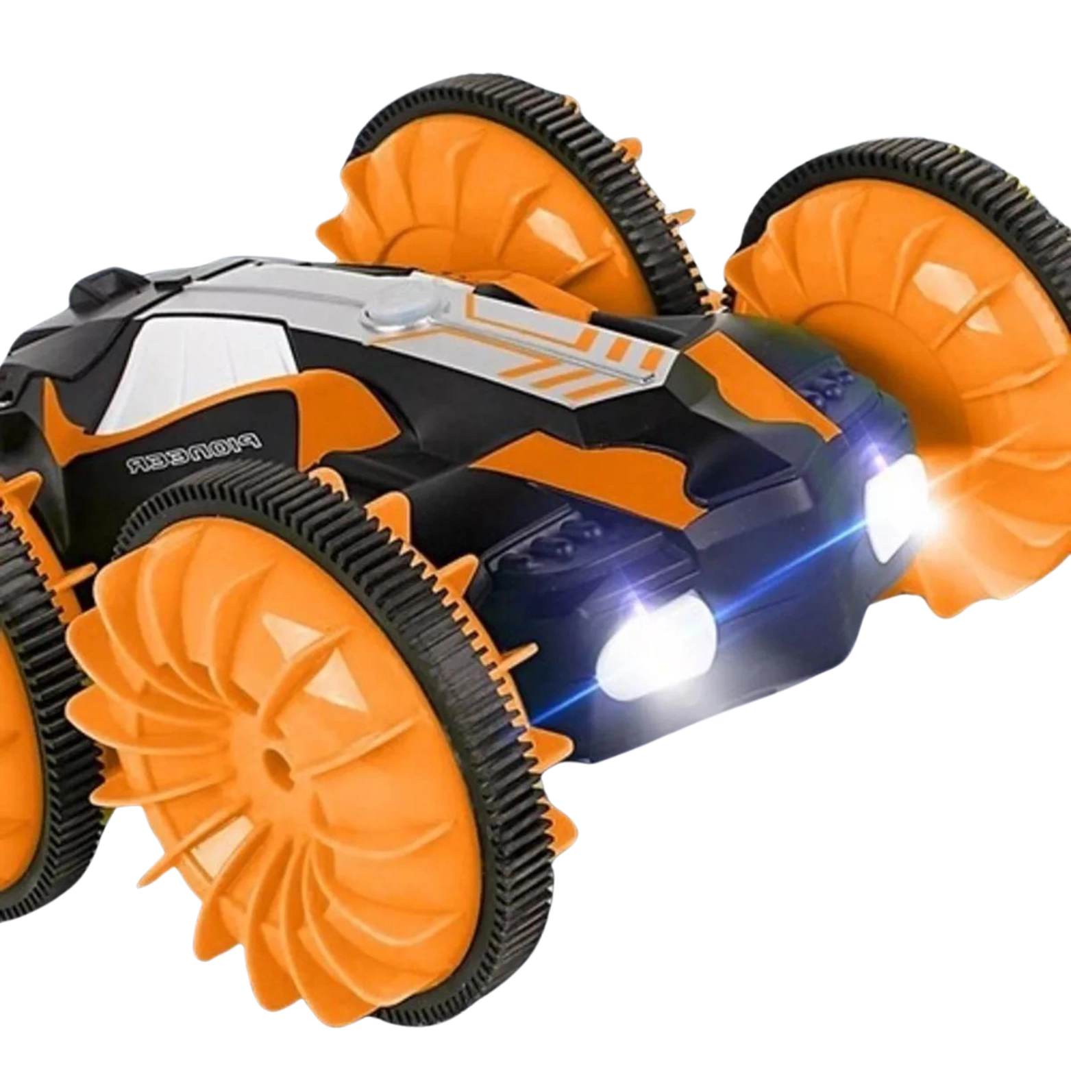 Dwustronna konstrukcja: Unikalna konstrukcja, umożliwia samochodowi poruszanie się w różnych kierunkach z dużą precyzją i szybkością. Od pokonywania zakrętów po wykonywanie pełnych obrotów o 360°, ten samochód jest gotowy na każde wyzwanie. Dzięki tej zaawansowanej funkcji, dzieci mogą cieszyć się płynną jazdą zarówno na asfalcie, jak i na terenach o skomplikowanych powierzchniach, a nawet po wodzie!