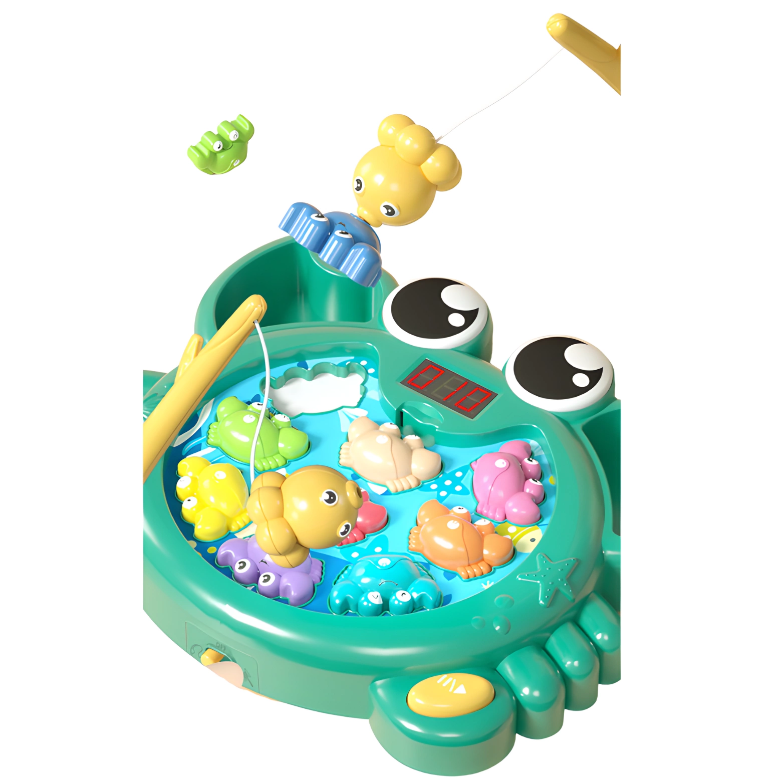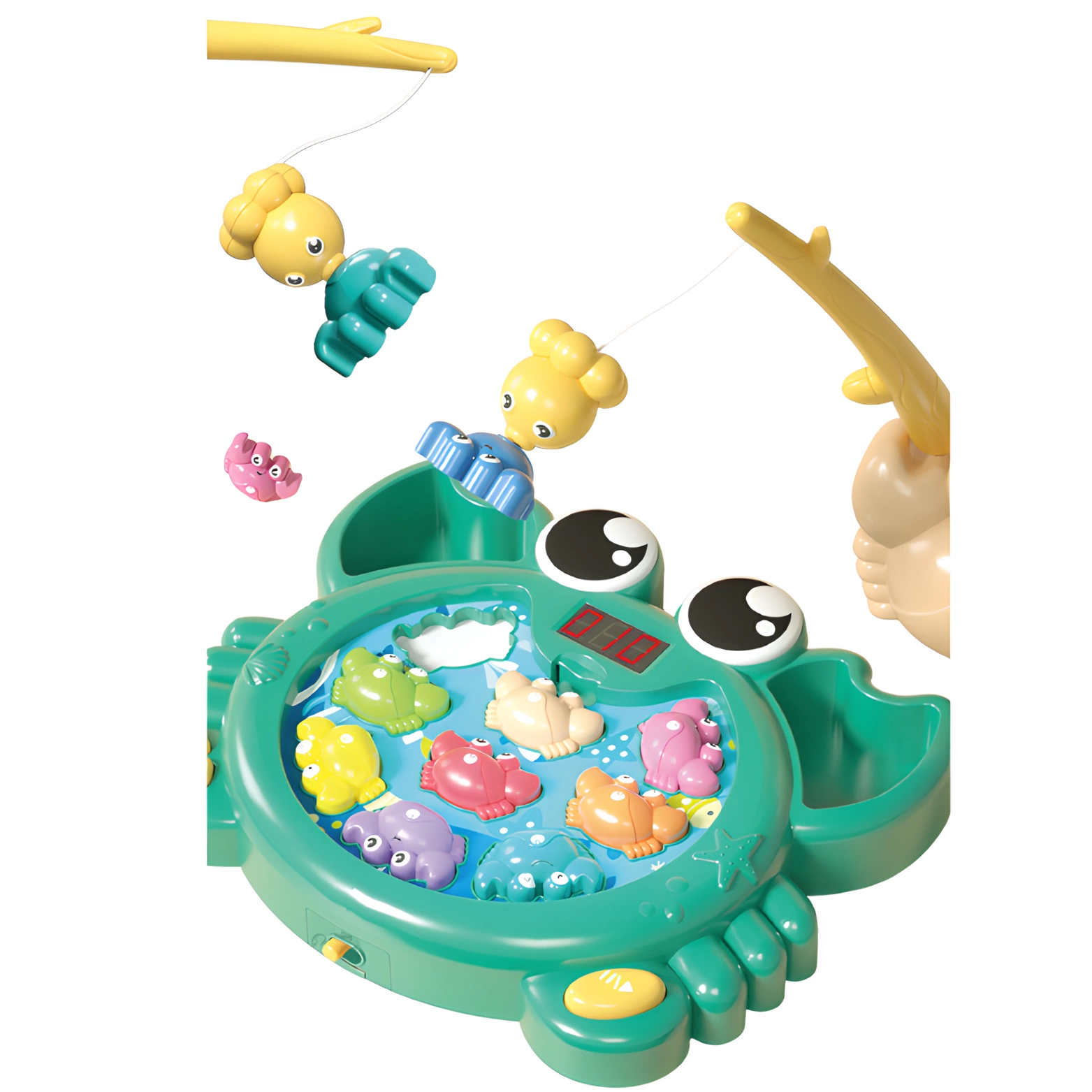 Druga gra to Łowienie Krabów. W zestawie znajdują się dwie wędki, a małe kraby, które są na magnes, wskakują do "wody" - czyli do środka kraba. Dzieci mogą rywalizować ze sobą, próbując złapać jak najwięcej krabów za pomocą wędki. To świetna zabawa, która rozwija koordynację ruchową i umiejętność koncentracji, a także uczy współzawodnictwa i współpracy.