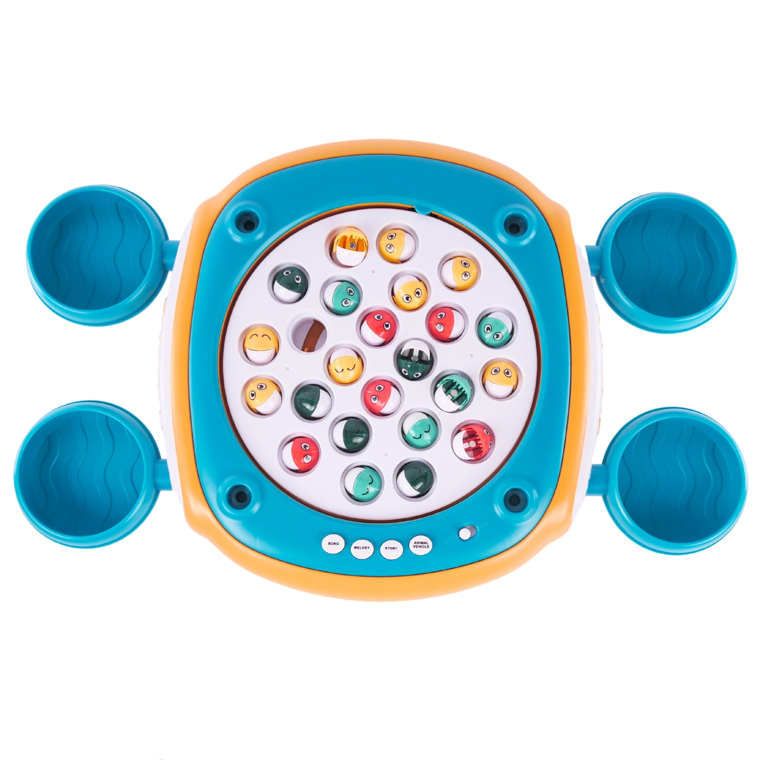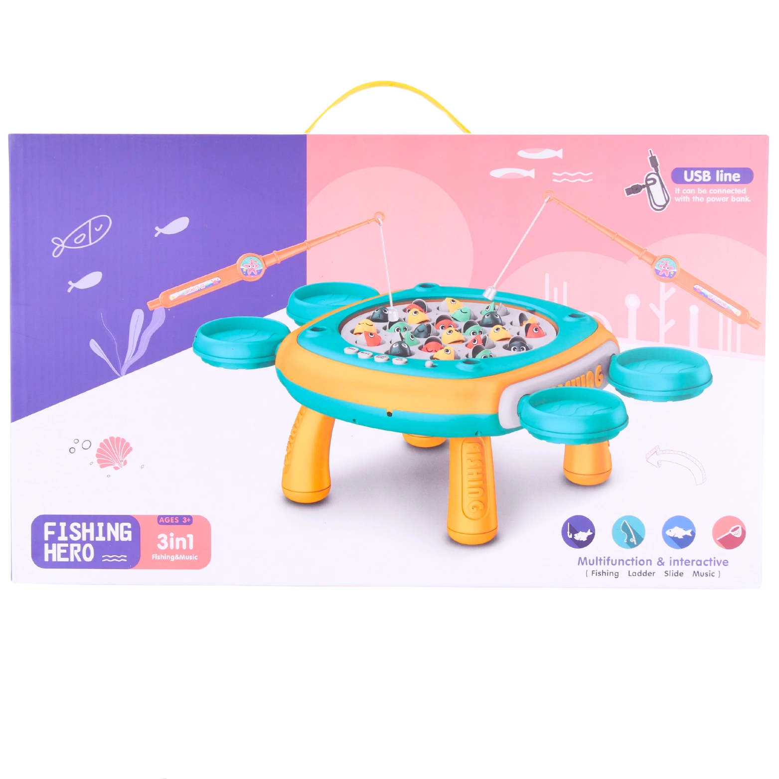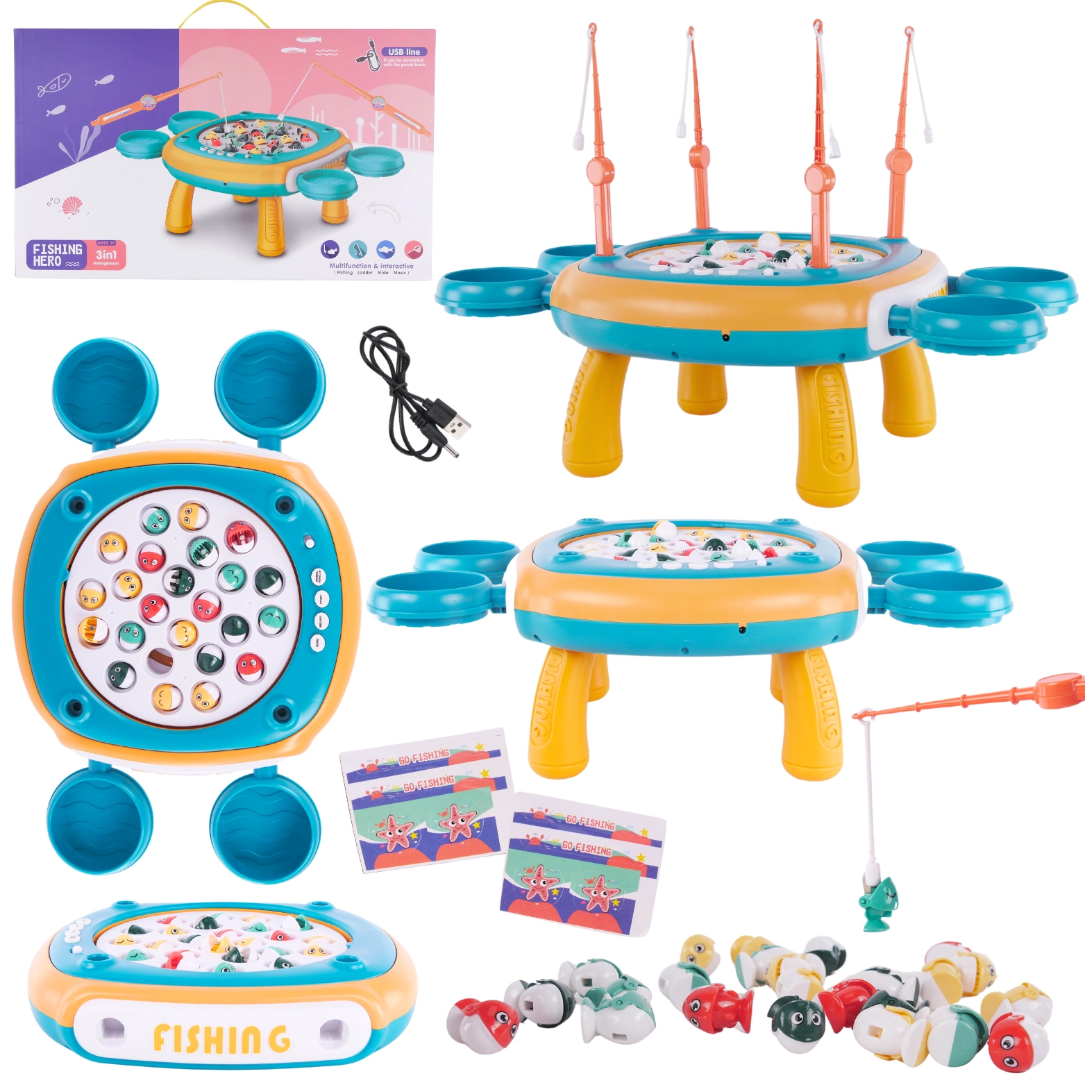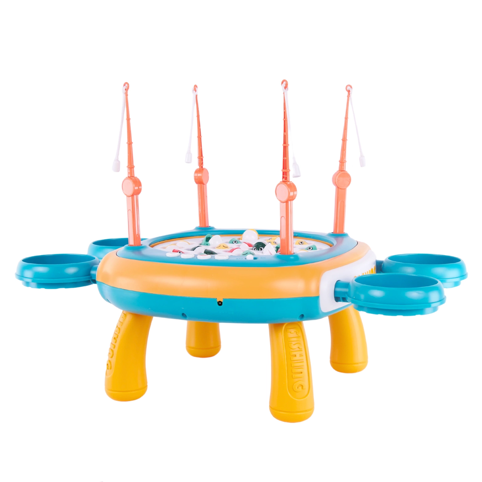 Interaktywny stolik z rybkami: Stolik został zaprojektowany tak, aby oferować dynamiczną i ekscytującą rozgrywkę. Podstawa stolika jest wyposażona w magnetyczne rybki, które obracają się, oraz emituje dźwięki muzyczne, co dodaje atmosfery i emocji do zabawy.