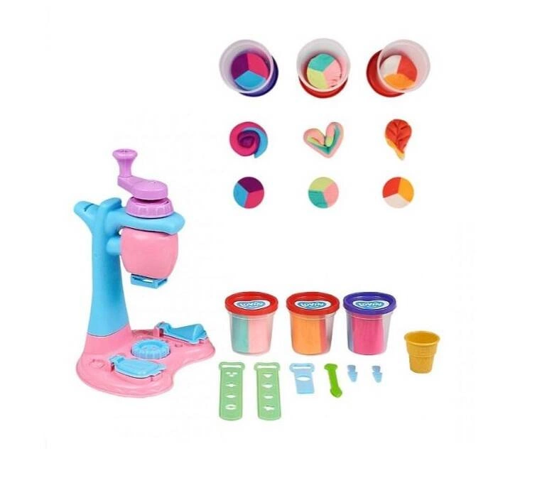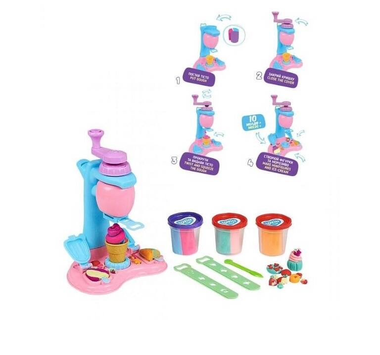 Zestaw zawiera różnokolorową plastelinę, foremki, niezbędne narzędzia do tworzenia lodów. Dzieci mogą cieszyć się mieszaniem kolorów i tworzeniem unikalnych kombinacji smakowych, jednocześnie rozwijając swoje zdolności artystyczne.