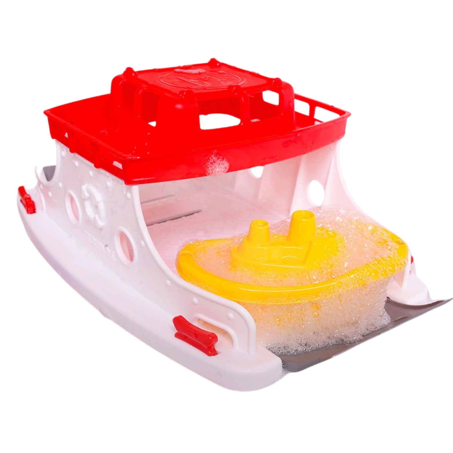 Ta duża i trwała motorówka została zaprojektowana z myślą o przewozie pasażerów, samochodów i innych ładunków. Doskonale sprawdzi się podczas zabaw w wannie, na plaży czy w domu. Zabawka wyposażona jest w 2 trapy, umożliwiające sprawną obsługę wejścia i wyjścia samochodów. Drabinki są dyskretnie ukryte w kadłubie, nie zakłócając ruchu podczas pływania.