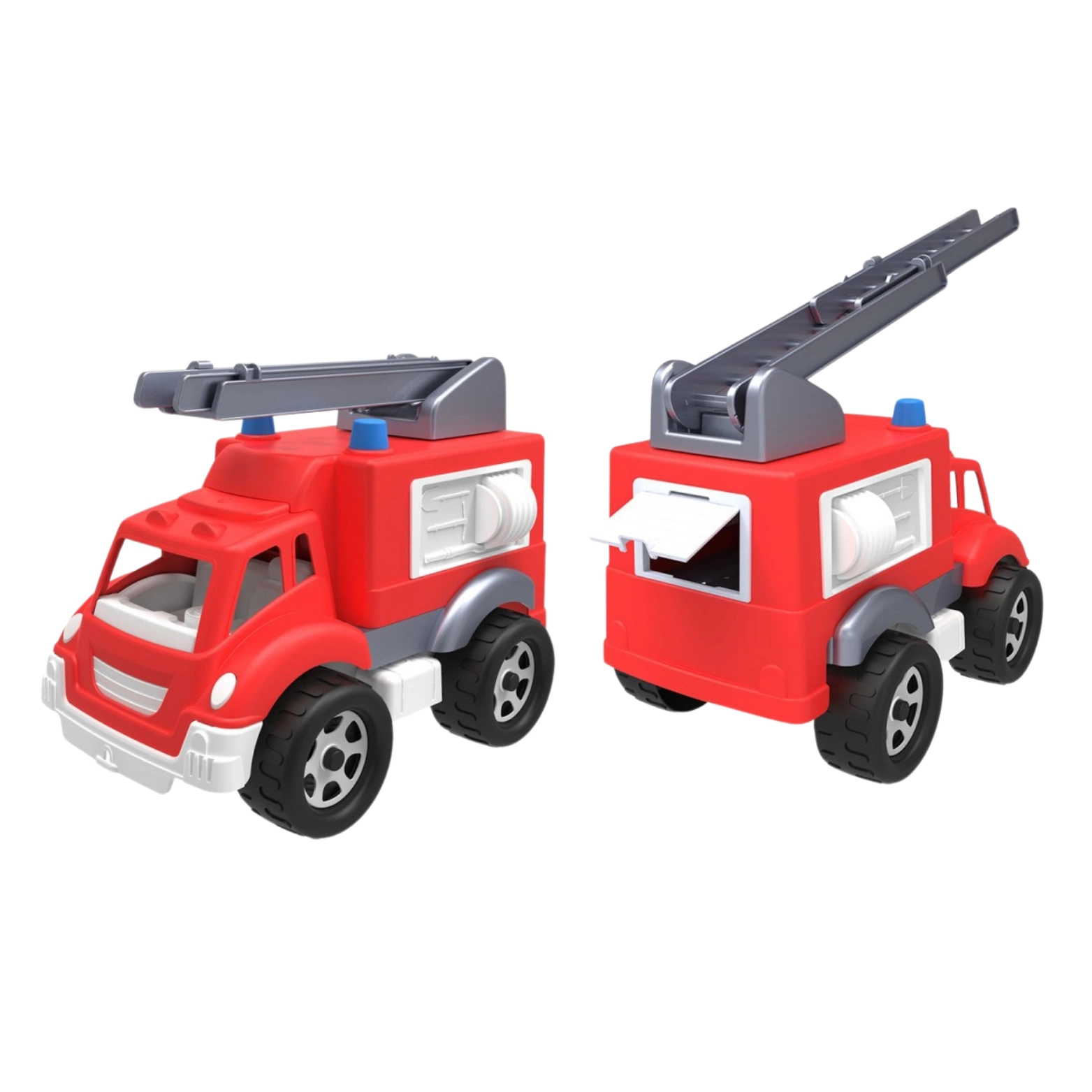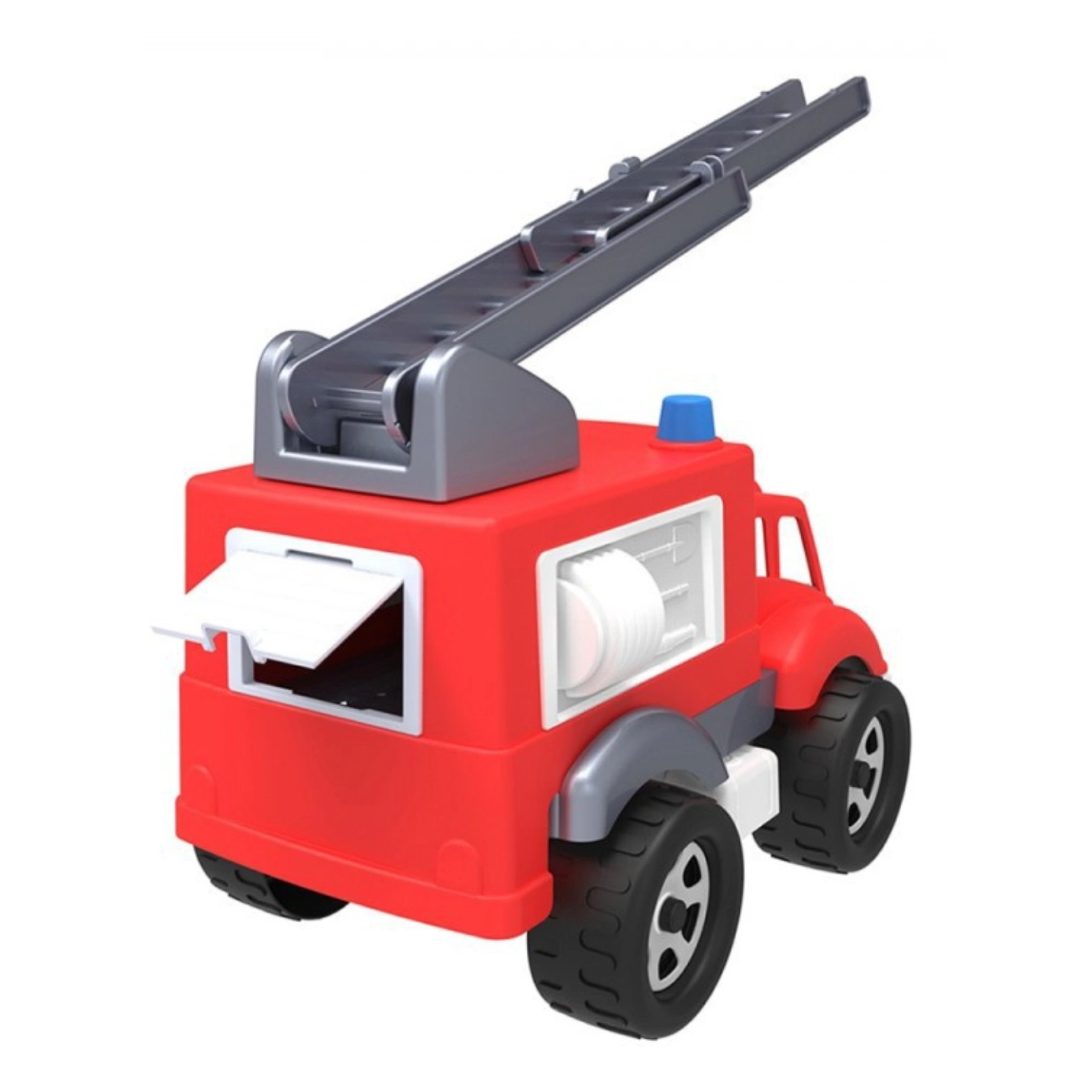 Ciężarówka strażacka przeniesie malucha w świat akcji ratunkowych. Drabina strażacka, osiągająca długość 40 cm, może być wysuwana i podnoszona, umożliwiając wykonywanie prawdziwych działań strażackich. Zabawka wyposażona jest w otwierane tylne drzwi w przestrzeni ładunkowej, co umożliwia łatwy dostęp do narzędzi i sprzętu strażackiego. To zachęca dziecko do rozwijania wyobraźni i tworzenia własnych scenariuszy akcji ratunkowych.