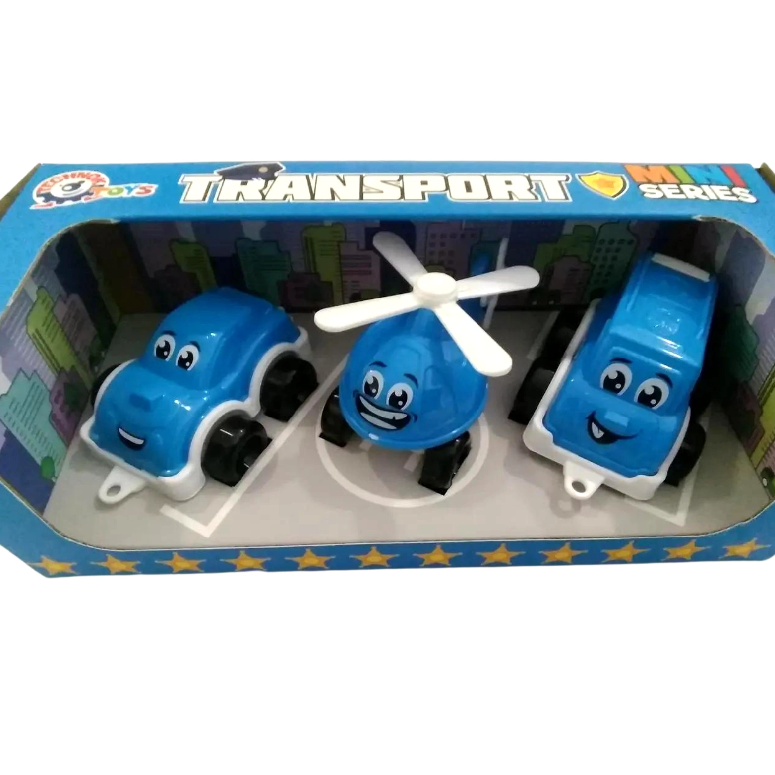 Urocze buźki: zabawki, takie jak helikopter, samochód i minibus, zostały wyposażone w wyraziste oczy i uśmiechy, co nadaje im przyjazny i sympatyczny wygląd. To sprawia, że dzieci mogą utożsamiać się z zabawkowymi bohaterami, co rozwija empatię u maluchów.