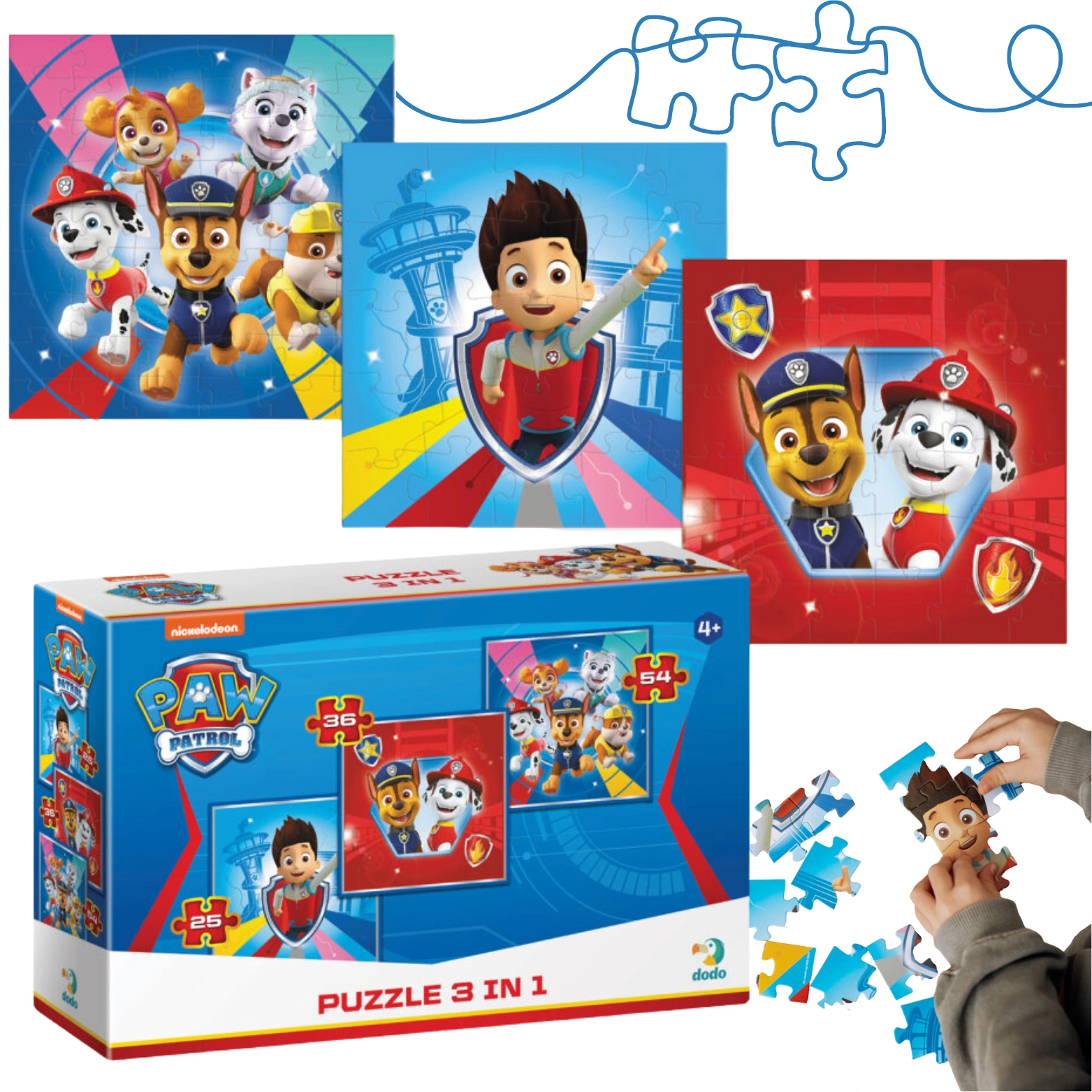Dzieci w wieku 4 lat i starsze pokochają to wyjątkowe zestawienie trzech układanek z bohaterami Psi Patrolu, które dostarczą zarówno rozrywki, jak i cennych chwil wspólnego czasu z ulubionymi postaciami!