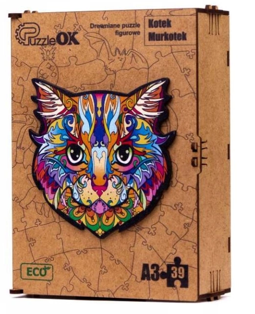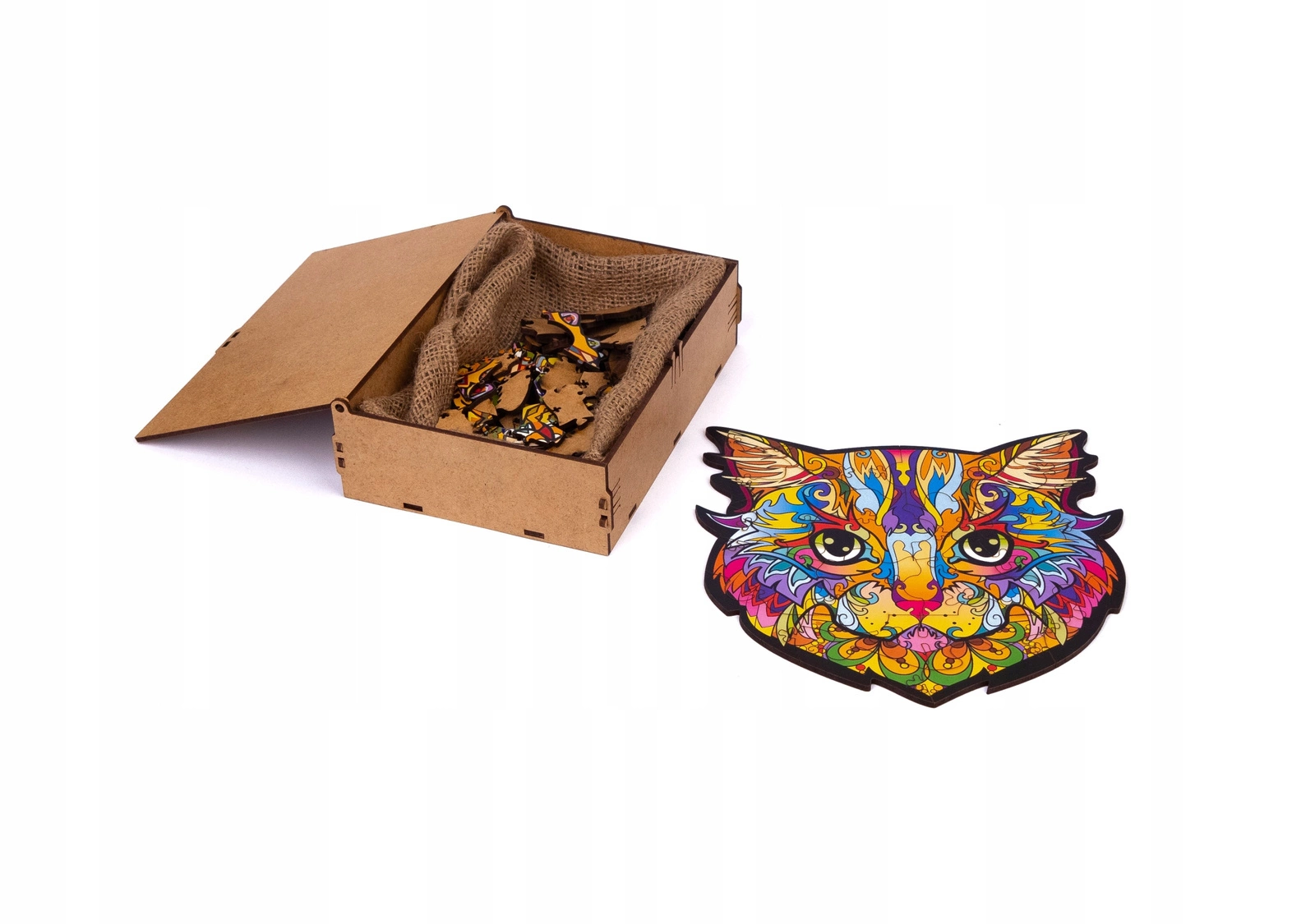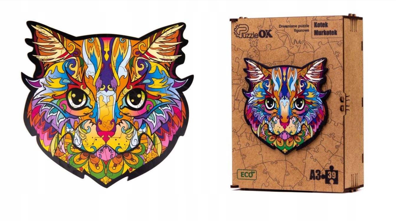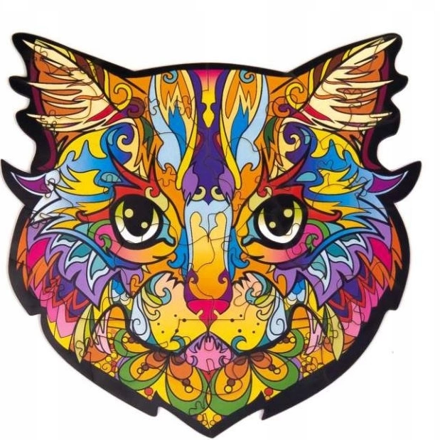 Zapewnij swojemu dziecku godziny pozytywnej rozrywki i rozwijaj jego zdolności manualne z drewnianymi puzzlami - KOT. Ten wspaniały obrazek przedstawia pięknego kotka.
