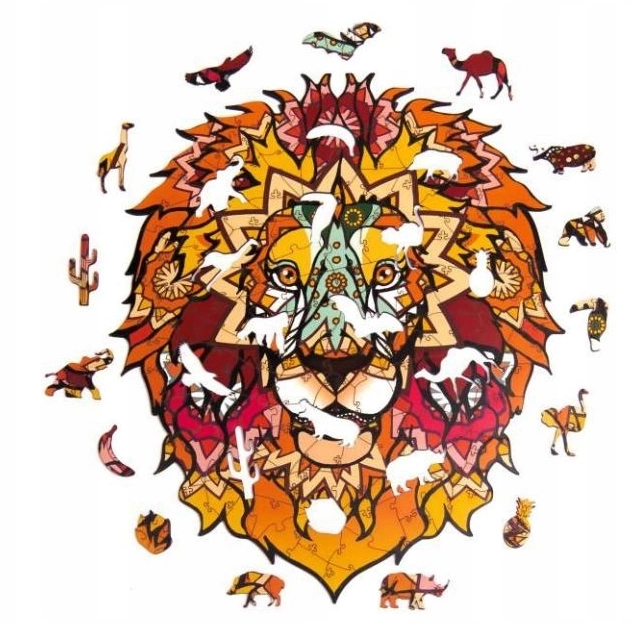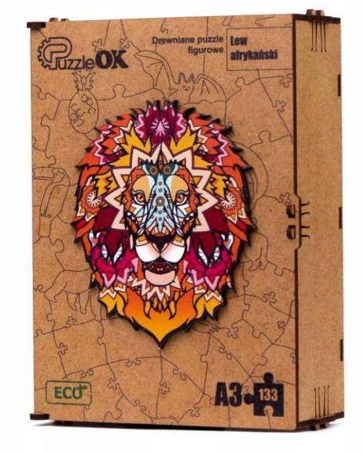 Zapewnij swojemu dziecku godziny pozytywnej rozrywki i rozwijaj jego zdolności manualne z drewnianymi puzzlami - LEW AFRYKAŃSKI. Ten wspaniały obrazek przedstawia pięknego lwa.