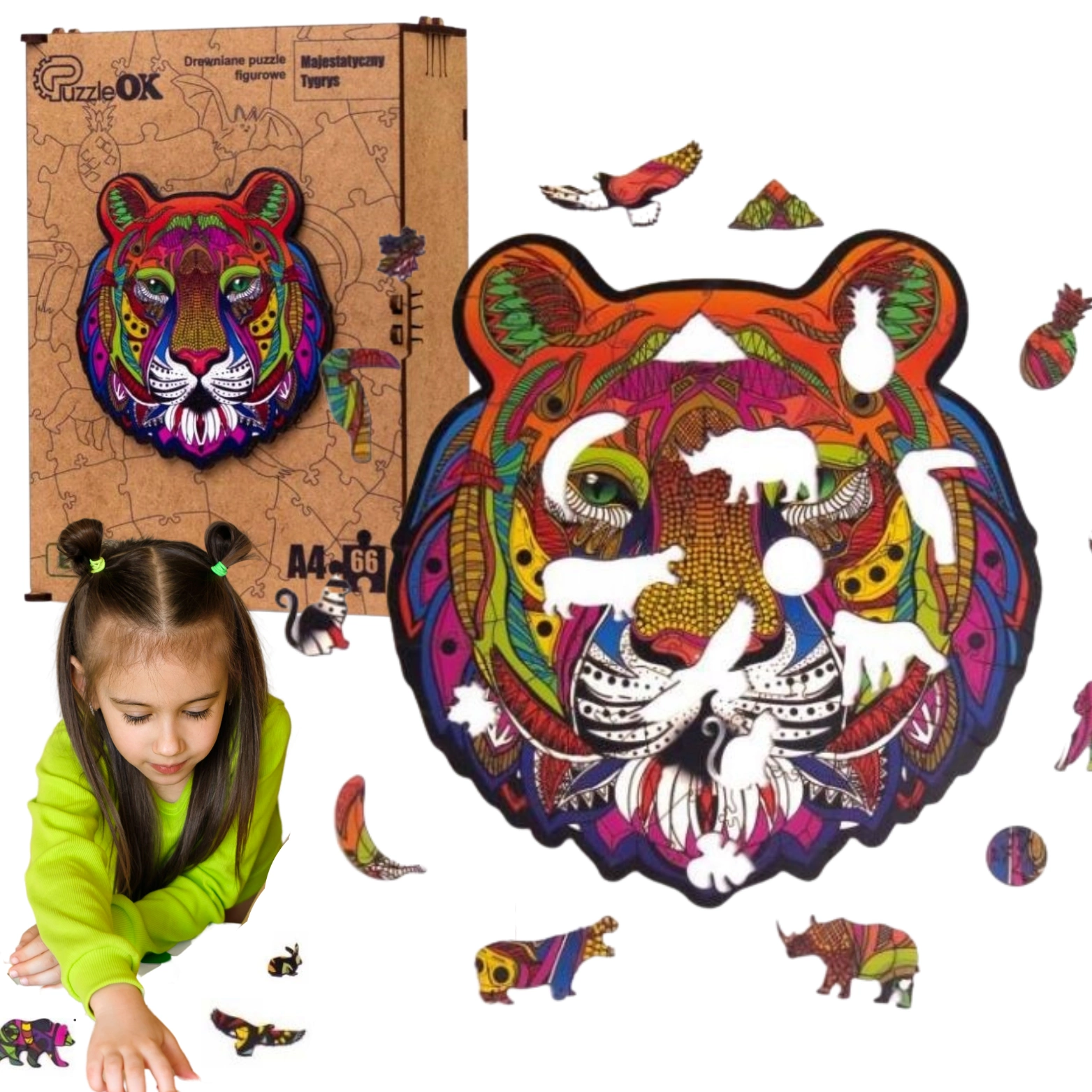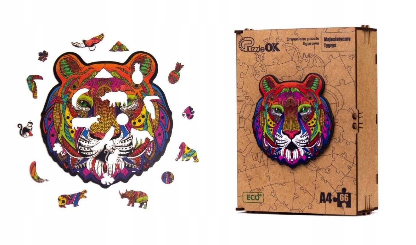 Zapewnij swojemu dziecku godziny pozytywnej rozrywki i rozwijaj jego zdolności manualne z drewnianymi puzzlami - MAJESTATYCZNY TYGRYS. Ten wspaniały obrazek przedstawia pięknego TYGRYSA.