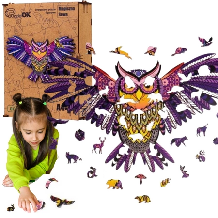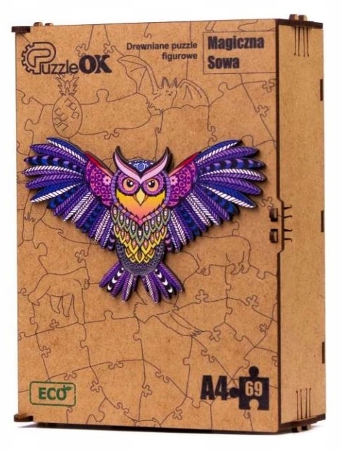 Zapewnij swojemu dziecku godziny pozytywnej rozrywki i rozwijaj jego zdolności manualne z drewnianymi puzzlami - SOWA. Ten wspaniały obrazek przedstawia pięknej sowy.