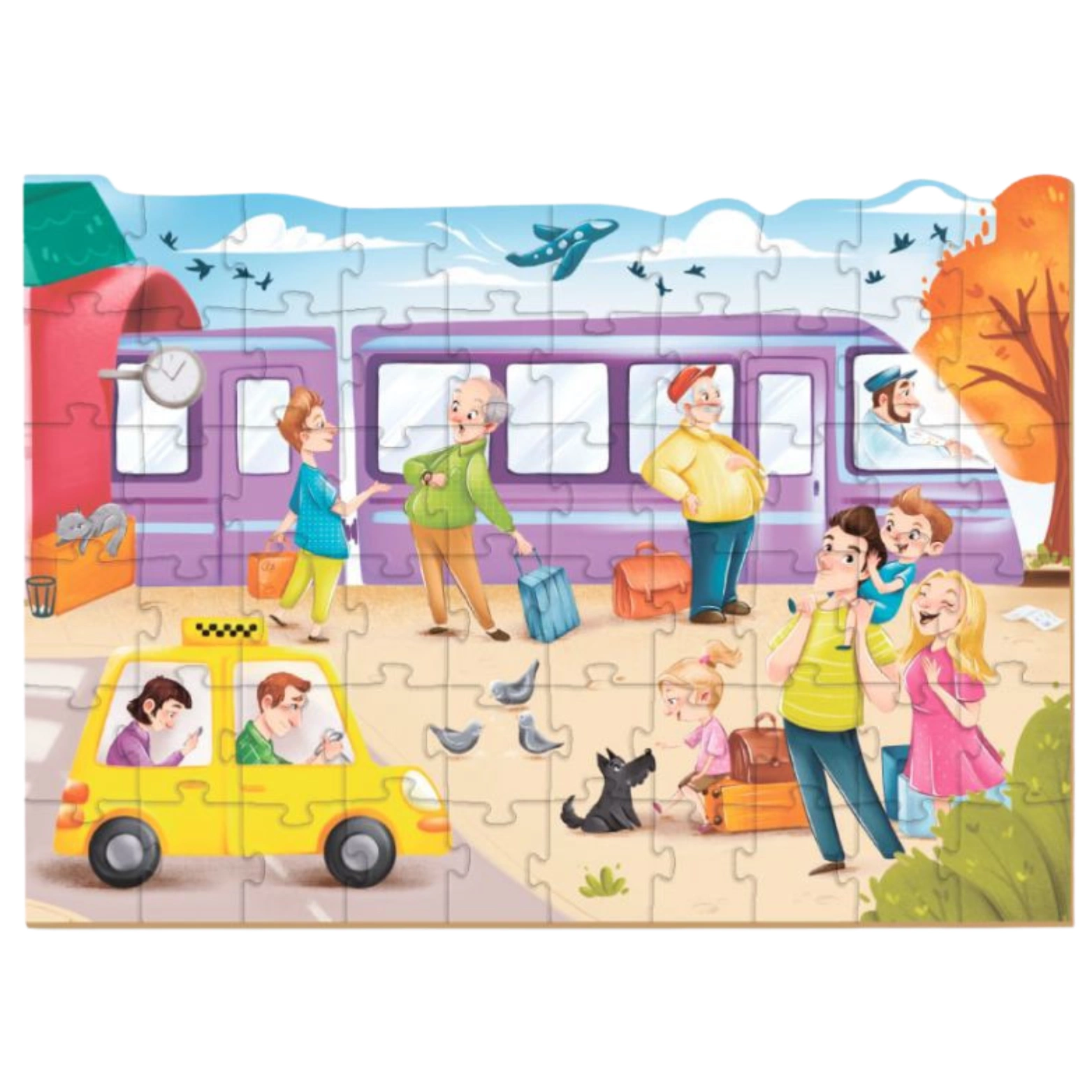 Puzzle "Dworzec Kolejowy" to idealny prezent dla małych miłośników kolejowych przygód!