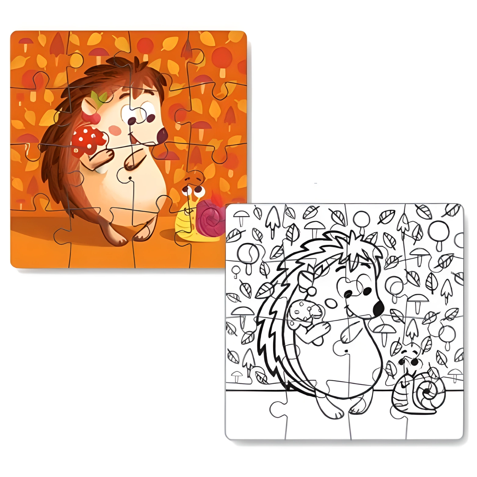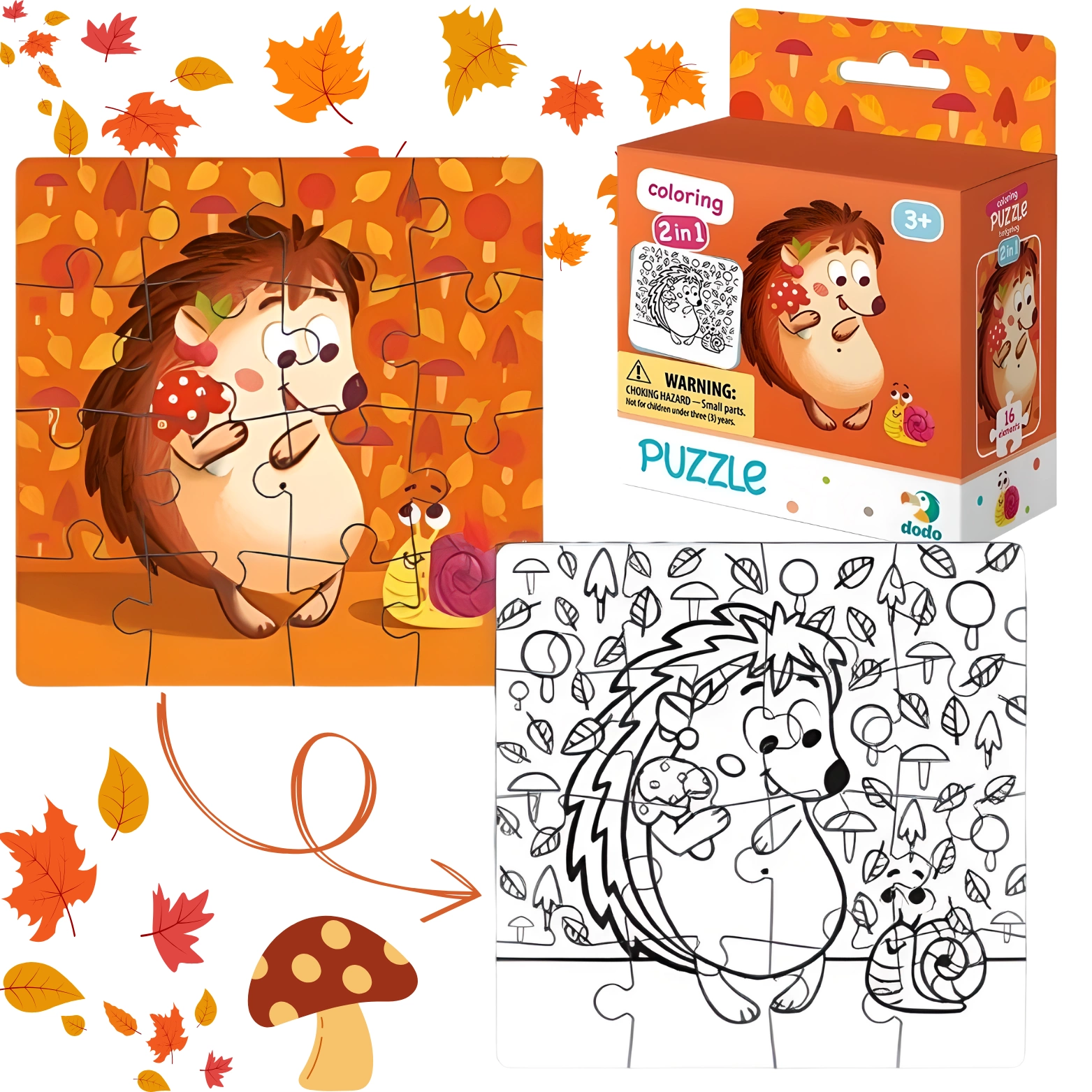 Przedstawiamy fascynujące Puzzle Kolorowanka z uroczym "Jeżykiem" - idealne dla małych artystów, którzy uwielbiają łączyć radość układania puzzli z radosnym malowaniem! To nie tylko zwykłe puzzle, to dwustronny świat kreatywności dla najmłodszych.