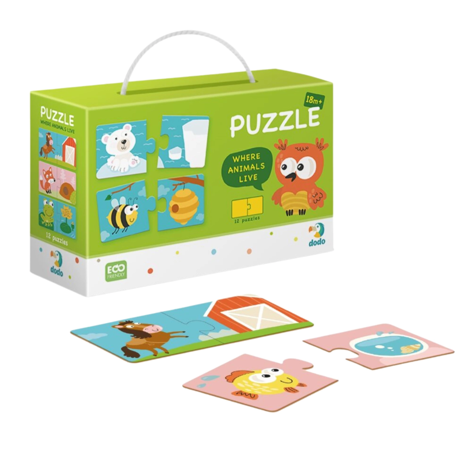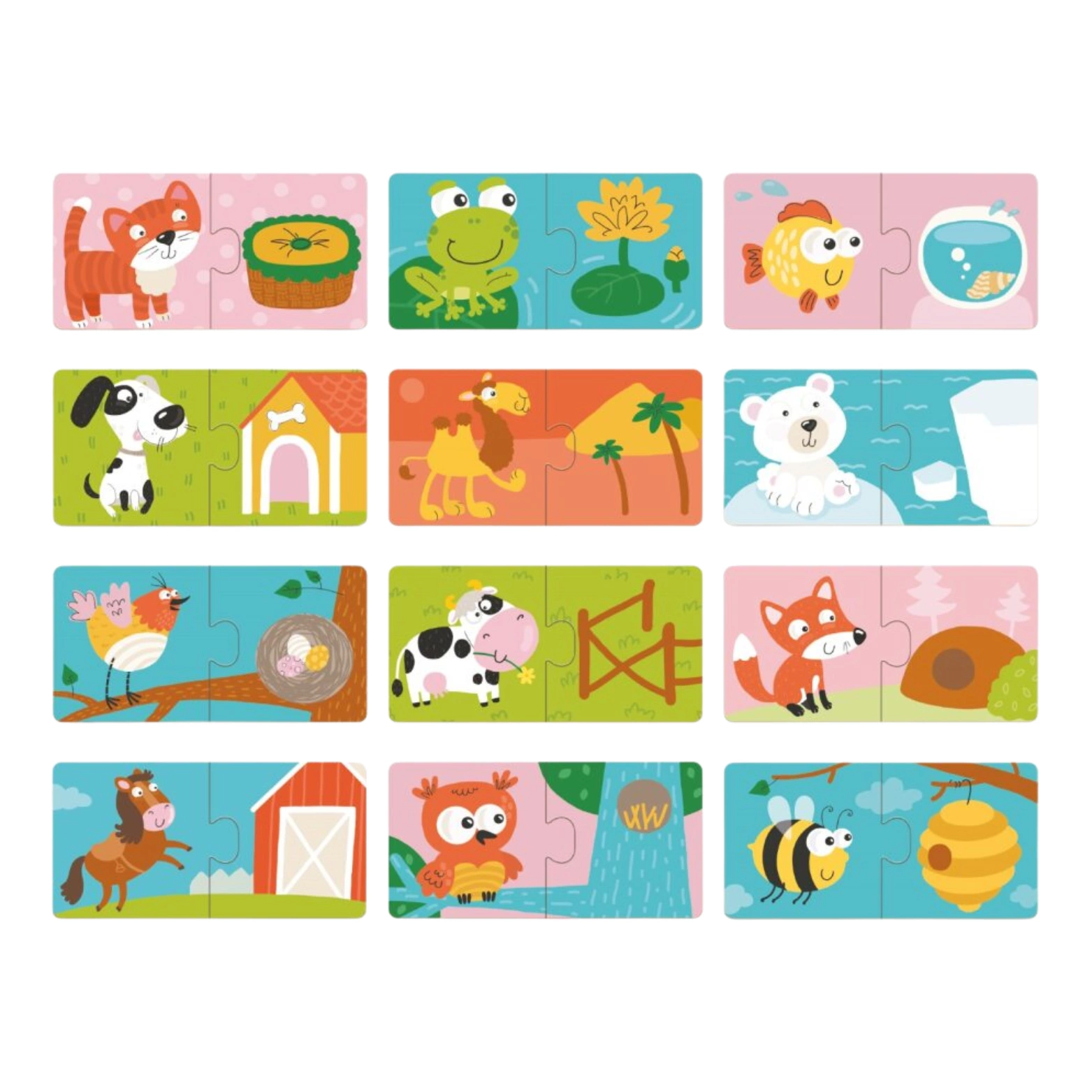 Przedstawiamy zestaw puzzli, który nie tylko bawi, ale także rozwija zdolności manualne i logiczne najmłodszych - Puzzle Połówki "Gdzie żyją zwierzęta". To aż 12 układanek, które przenoszą dzieci w magiczny świat zwierząt, ucząc jednocześnie rozpoznawania obrazków i rozwijania umiejętności układania puzzli.