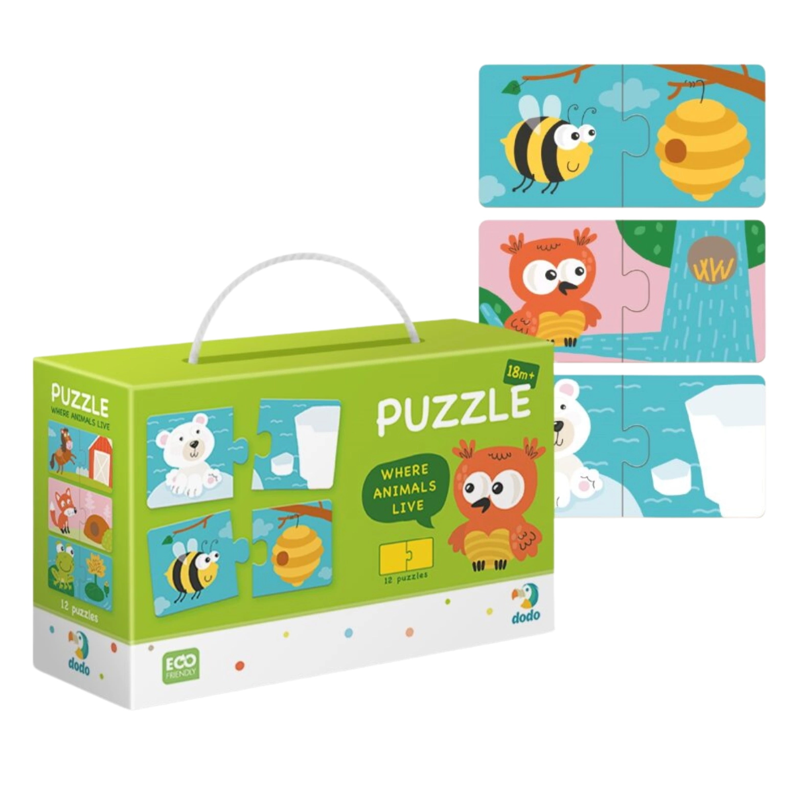 Puzzle Duo Połówki "Gdzie żyją zwierzęta" to więcej niż zabawa, to także edukacyjne doświadczenie, które pobudza kreatywność i poznawanie piękna przyrody.