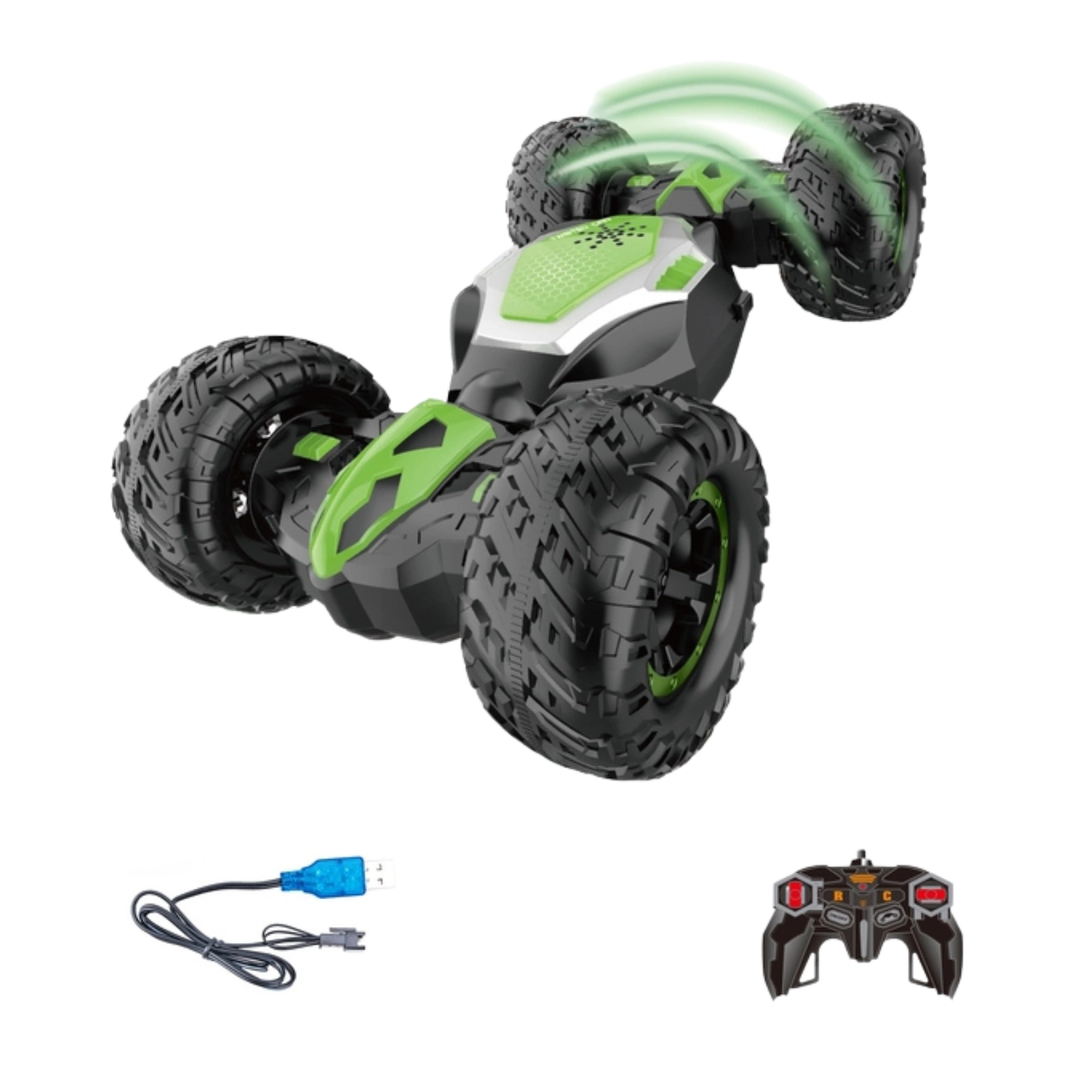 Zasilanie auta opiera się na 1 akumulatorze o napięciu 3,7 V, a dołączony kabel USB ułatwia jego ładowanie. Pilot do sterowania samochodem działa na baterie typu AA o napięciu 1,5 V (brak w zestawie).