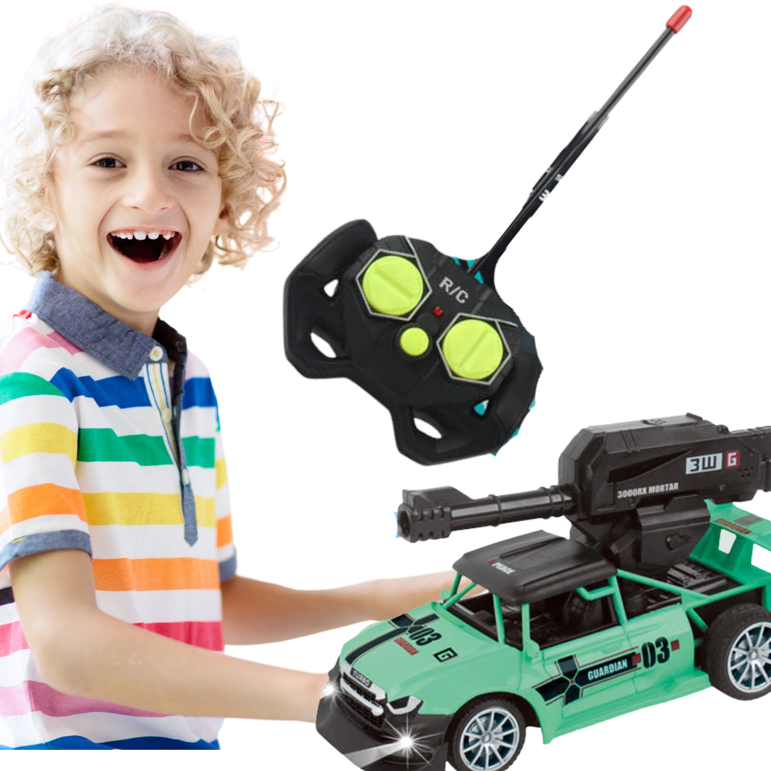 Zdalnie sterowany samochód z wyrzutnią strzelającą