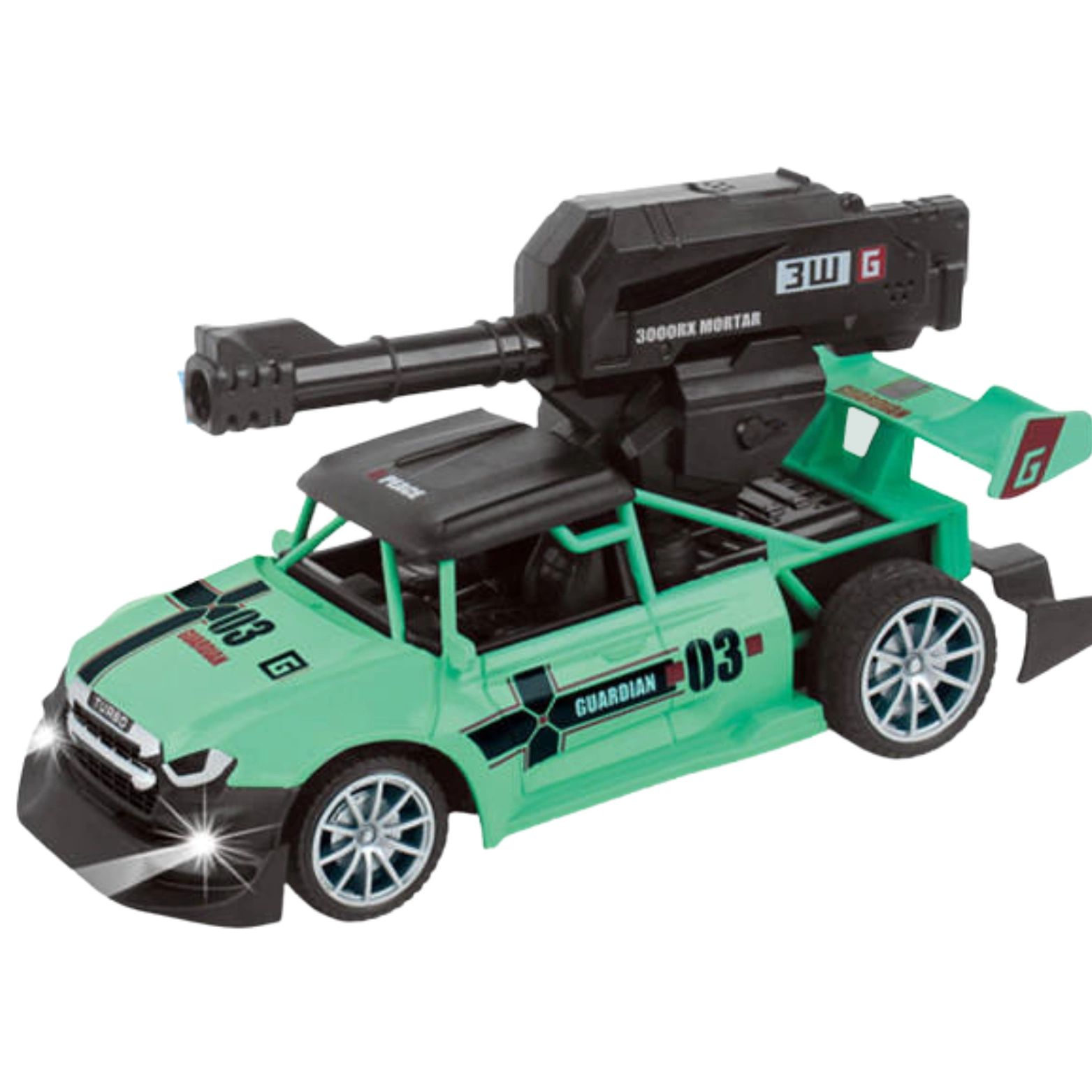 Zdalnie sterowany samochód z wyrzutnią strzelającą żelowymi kulkami dostarczy mnóstwo emocji zarówno dzieciom, jak i dorosłym. Wyrzutnia urozmaici zabawę i zaskoczy niejednego przeciwnika. Zabawka porusza się we wszystkich kierunkach, a sterowanie odbywa się za pomocą łatwego w obsłudze pilota, na którym umieszczony jest przycisk uruchamiający wyrzutnię.