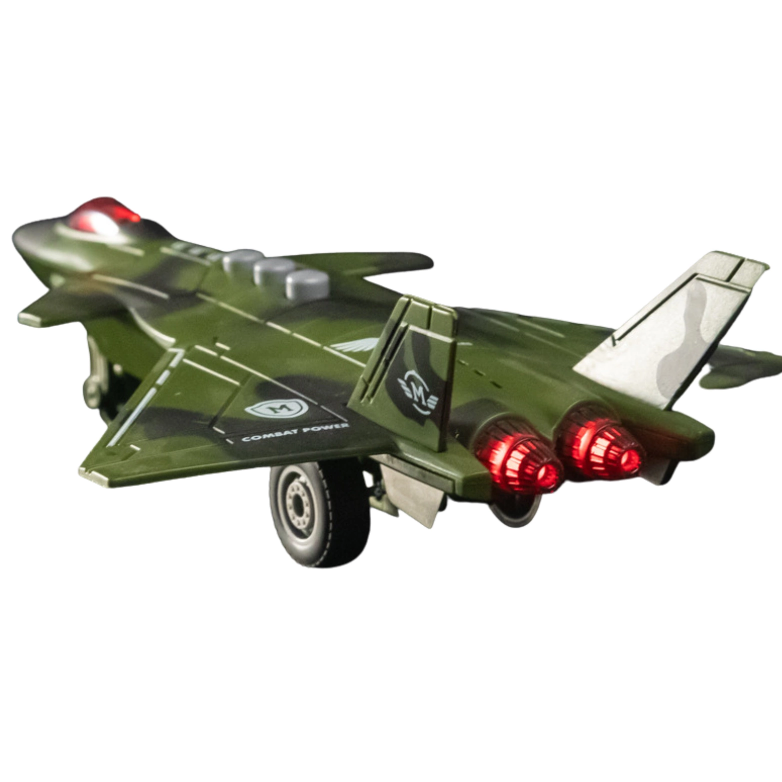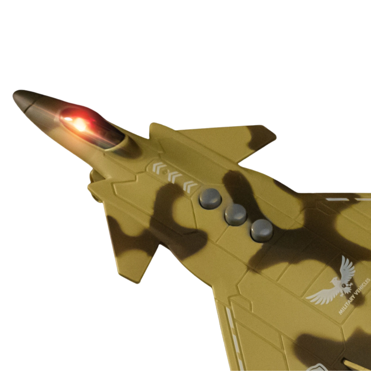 Kolorystyka w stylu moro nadaje samolotowi militarne wcielenie, a każda misja staje się przygodą w nieodkrytych zakątkach wyobraźni. To doskonała zabawka dla małych żołnierzy!