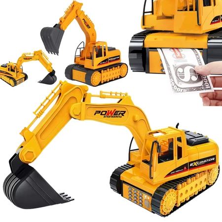 Koparka dla dzieci to fantastyczny pojazd budowlany dla małego fana motoryzacji. Oprócz ruchomych części oraz efektów dźwiękowych i świetlnych, pełni funkcję skarbonki - sejfu.