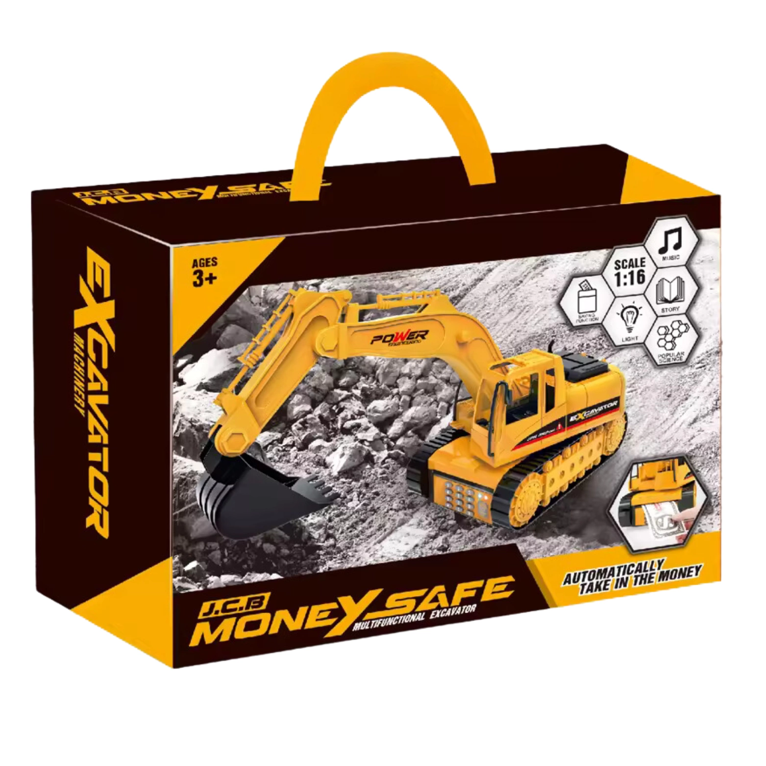Ruchome Części: Nasza skarbonka została zaprojektowana tak, aby odzwierciedlać prawdziwą koparkę, wyposażoną w ruchome ramie i łyżkę. Dzięki temu dzieci mogą cieszyć się interaktywnym doświadczeniem i zabawą podczas oszczędzania pieniędzy.