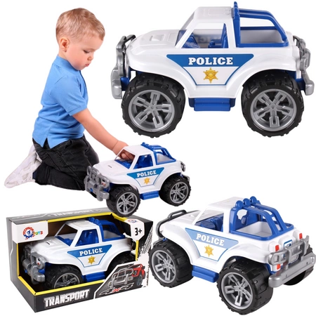 Terenowy pojazd policyjny to idealna zabawka do wielu aktywności. Doskonale sprawdzi się zarówno w piaskownicy, jak i w domu czy na podwórku, oferując dziecku różnorodność zabawy.