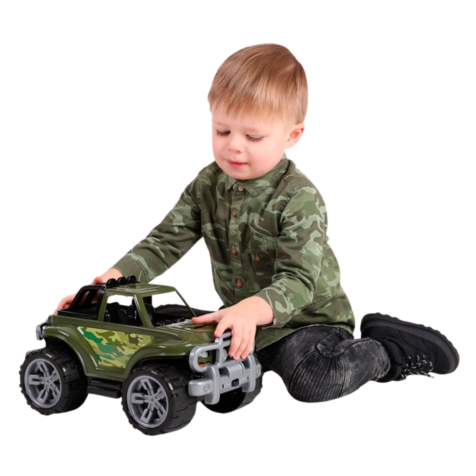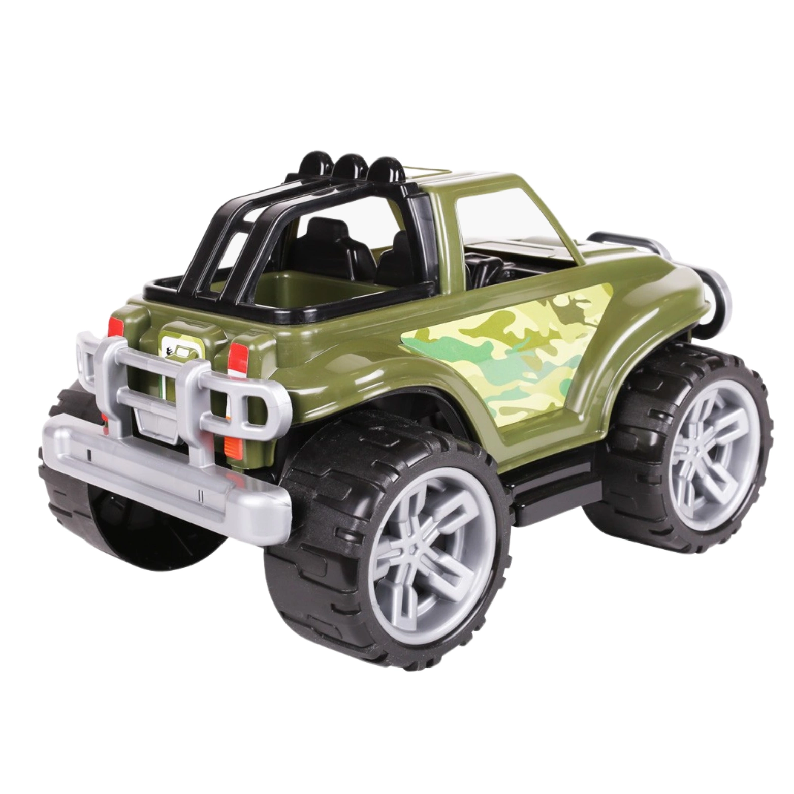Ciekawy wygląd, autentyczna kolorystyka i precyzyjne wykonanie odzwierciedlają realistyczny wygląd auta terenowego. Maluchy mogą poczuć się jak prawdziwi kierowcy, tworząc własne wyprawy. Terenówka wykonana jest z bezpiecznym i trwałych materiałów, co zapewnia jej wysoką jakość podczas zabawy.