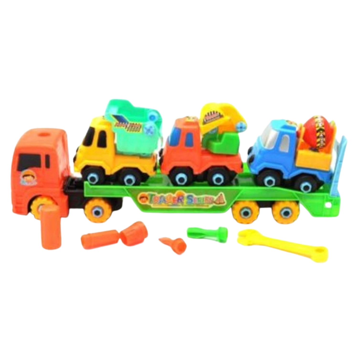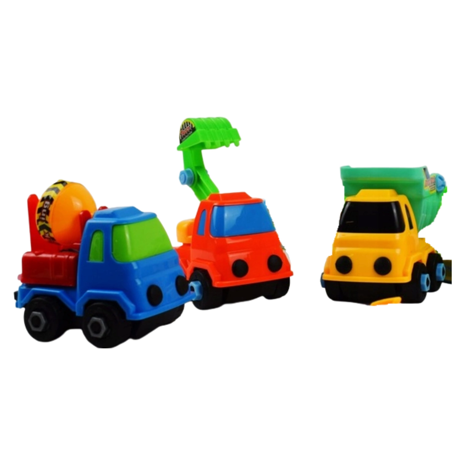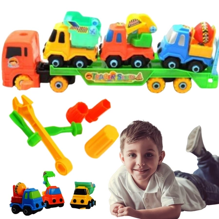 Zestaw do skręcania dinozaurów to fantastyczna zabawka dla małego majsterkowicza! Zabawka składa się z lawety, który przewozi 3 pojazdy budowlane, narzędzi (śrubokręt, śrubki, klucz) dzięki którym zdobędzie zdolności manualne i poszerzy wyobraźnie i kreatywność. Dodatkowo będzie potrafił rozkręcać i skręcać koła pojazdom i tym samym poprawi swoją koncentracje oraz logiczne myślenie.