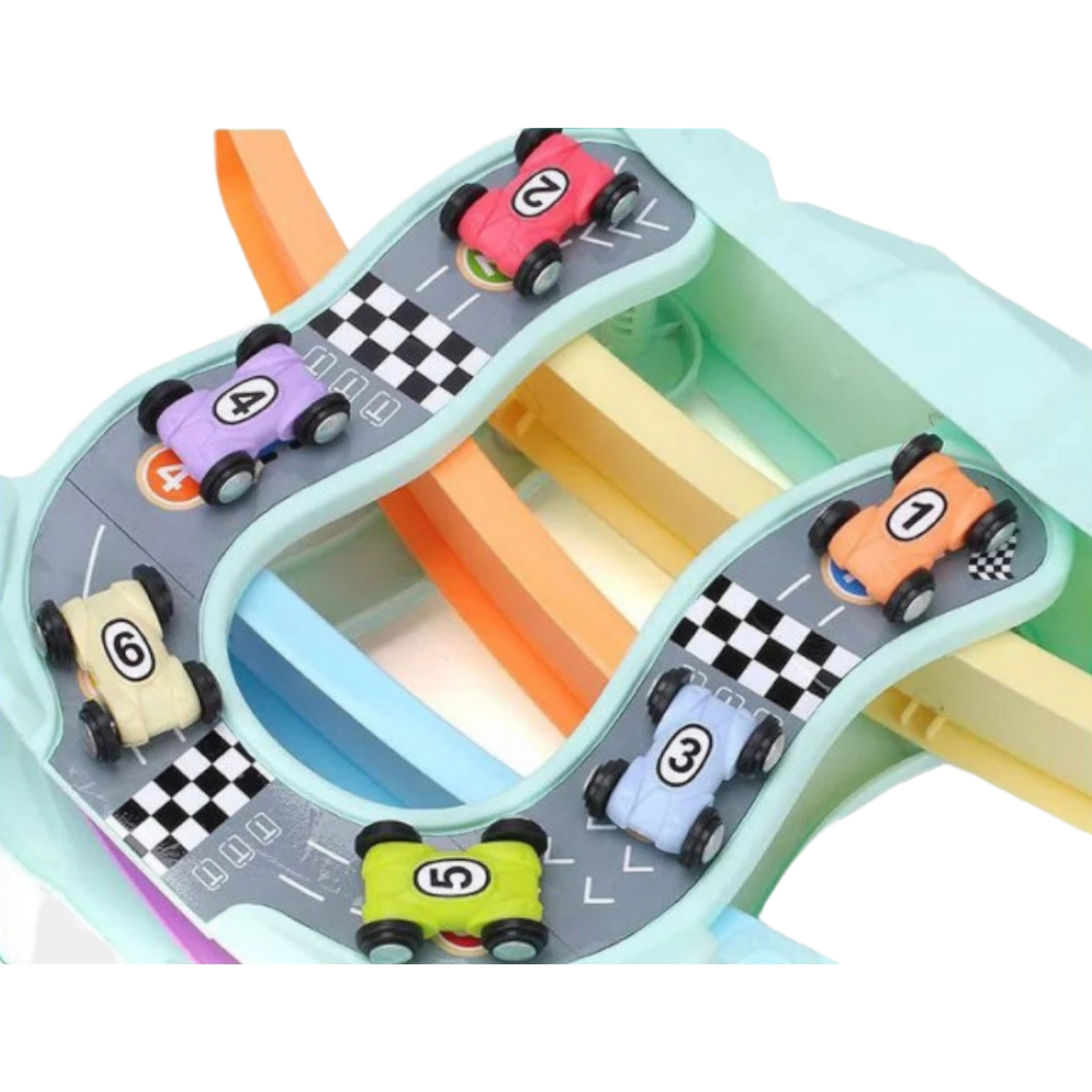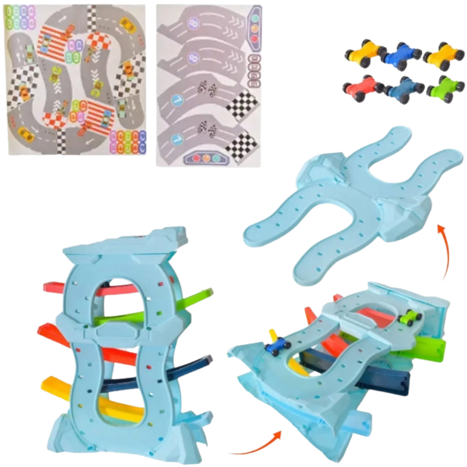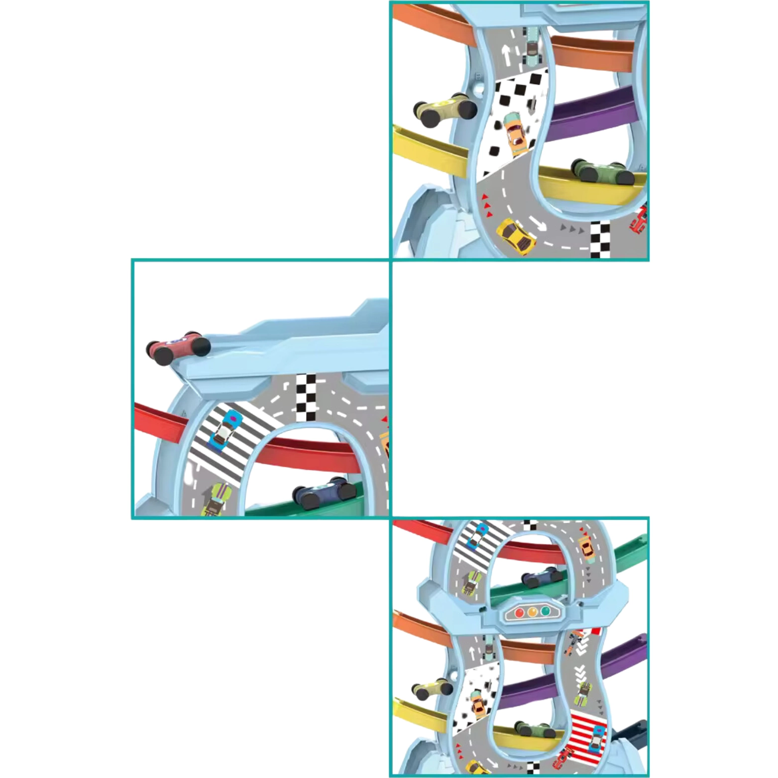 Bezpieczne wykonanie: Tor samochodowy i samochodziki zostały wykonane z wysokiej jakości, nietoksycznych materiałów, które są bezpieczne dla dzieci. Gładkie krawędzie eliminują ryzyko skaleczeń, a solidna konstrukcja zapewnia długotrwałą zabawę.