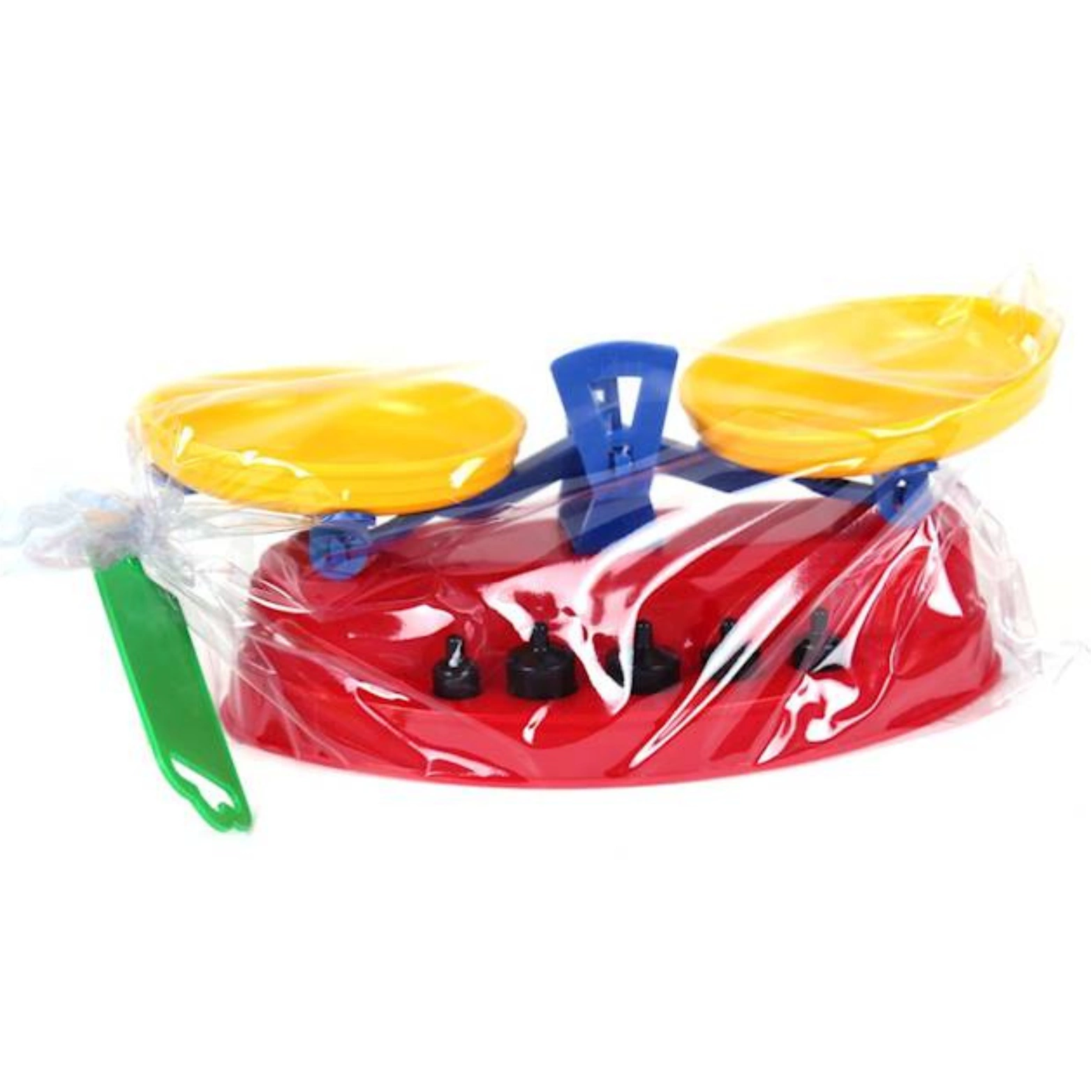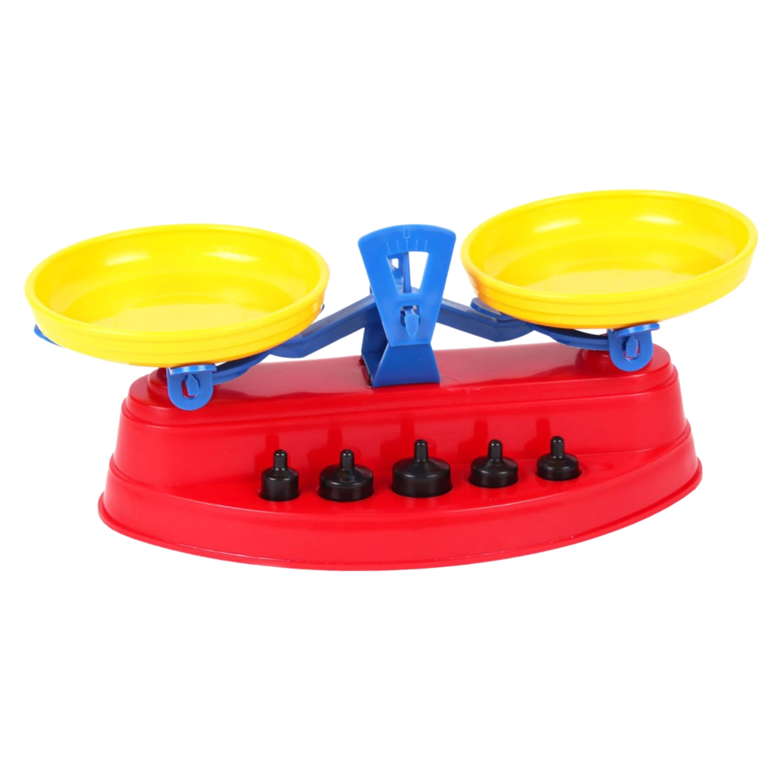 Waga posiada dwie głębokie tace, na których dziecko może układać różne przedmioty. To nie tylko element zabawy, ale także okazja do rozwijania zdolności motorycznych poprzez manipulację różnymi obiektami. Zestaw wagi zawiera pięć odważników o różnych wagach. To doskonała okazja do nauki liczenia oraz eksperymentowania z równowagą, gdy dziecko dodaje lub odejmuje odważniki.