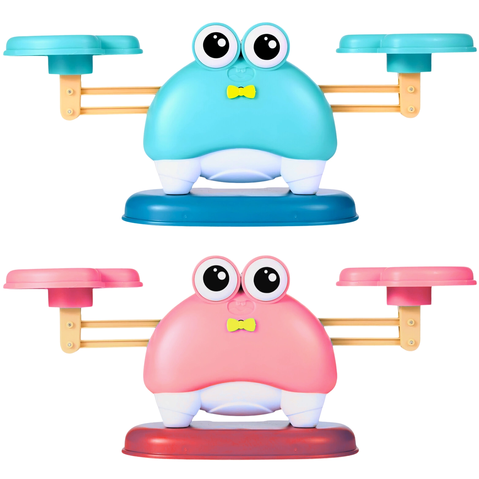 Ważenie na wadze: Waga szalkowa w kształcie kraba zachęca do zabawy swoim uroczym wyglądem oraz ciekawymi możliwościami. Zabawka działa jak prawdziwa waga, ucząc dzieci liczenia w przystępny dla nich sposób. Każdy z klocków-cyferek ma inną ciężkość, najlżejsza jest 1, a najcięższa 10. Muszka, którą nosi krab, przechyla się wraz z ciężarkami i pokazuje która strona jest cięższa. Dzięki temu rozwiązaniu, maluchy mogą poznawać wartości cyfr oraz która z nich jest mniejsza lub większa. W zestawie znajdują się karty, na których pokazana jest cyferka i ilość krabów, która jej odpowiada. Zachęca to do sprawdzenia na wadze, czy faktycznie cyfra 3 ma taką samą wagę jak 3 kraby. Taka zabawa rozwija zdolności poznawcze i logikę.