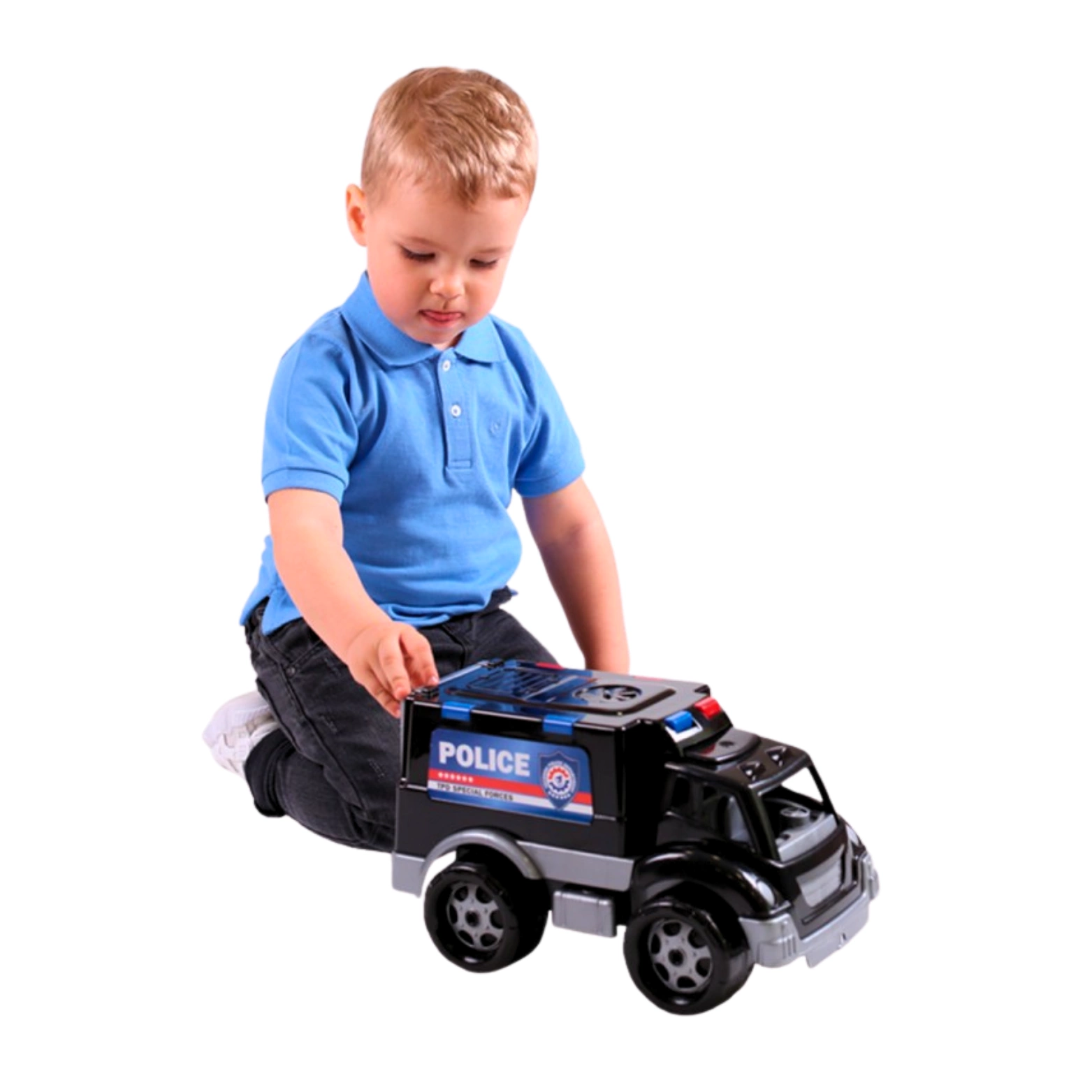 Rozwijanie zainteresowań u najmłodszych jest bardzo ważne. Być może dzięki niewinnej zabawie w policję dziecko zdobędzie pasję na całe życie. Bawić się można na wiele różnych sposobów, a jedynym ograniczeniem jest wyobraźnia. Samochód ma duże koła, logo policji, imitację świateł oraz otwierane drzwi, przez które do środka mogą wejść złapani przestępcy. Dzięki tej zabawce dziecko może się nauczyć podstawowych zasad, chętniej wykonywać dobre uczynki czy pomagać, a także z większą łatwością zapamiętać numery alarmowe.