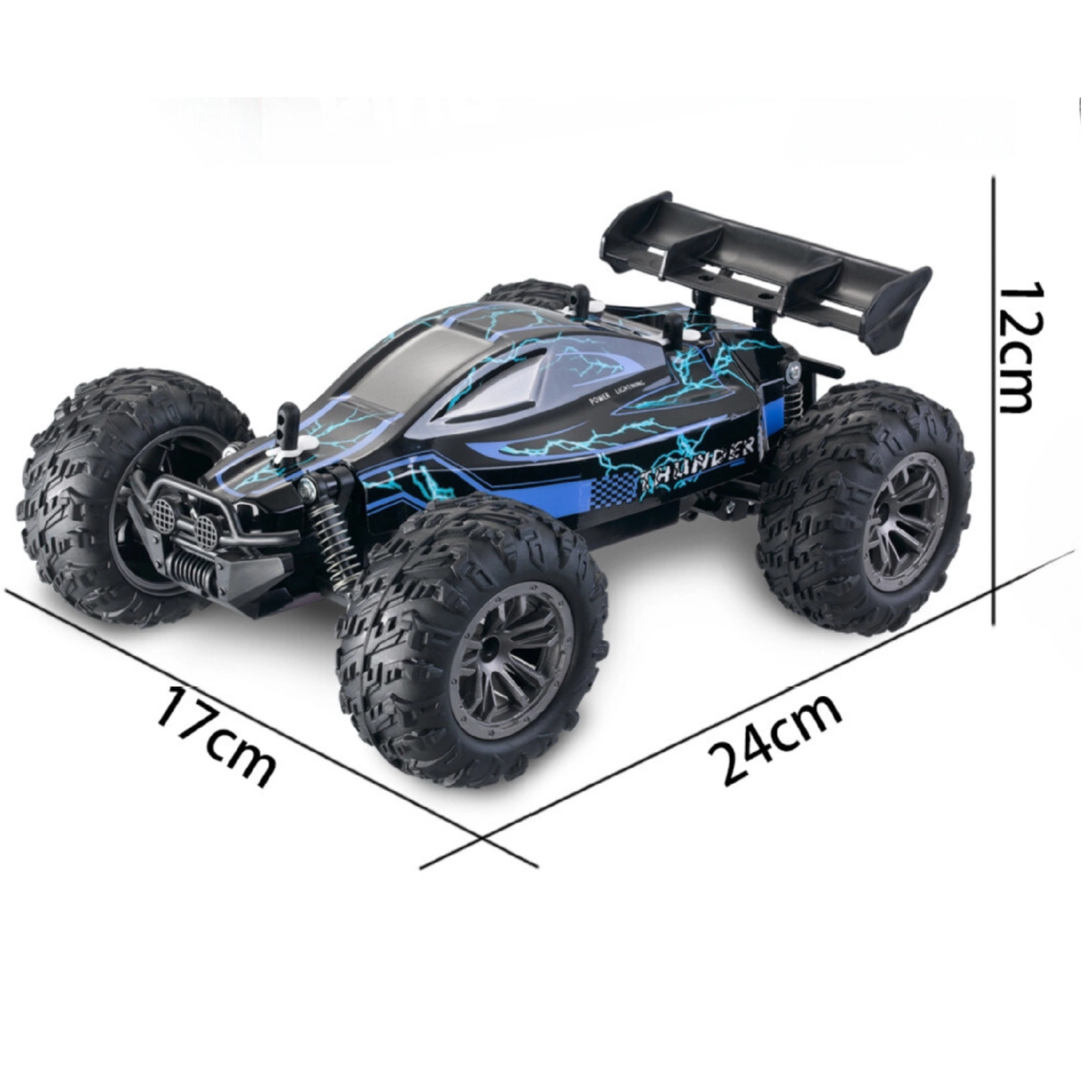 Pilot RC: Sterowanie tym wspaniałym pojazdem odbywa się za pomocą pilota zdalnego sterowania. Pilot pozwala na precyzyjne kierowanie w każdym kierunku, co daje pełną kontrolę nad jego ruchem.