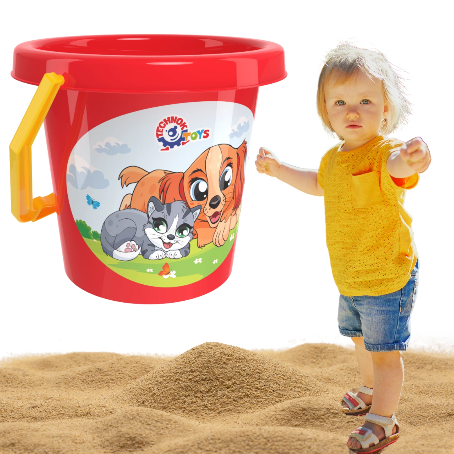 Urocza grafika: wiaderko urozmaicone jest w uroczą grafiką przedstawiającą zwierzątka, które zachęcają do zabawy. Kolorowe i zabawne motywy sprawią, że budowanie z piasku stanie się jeszcze przyjemniejsze.
