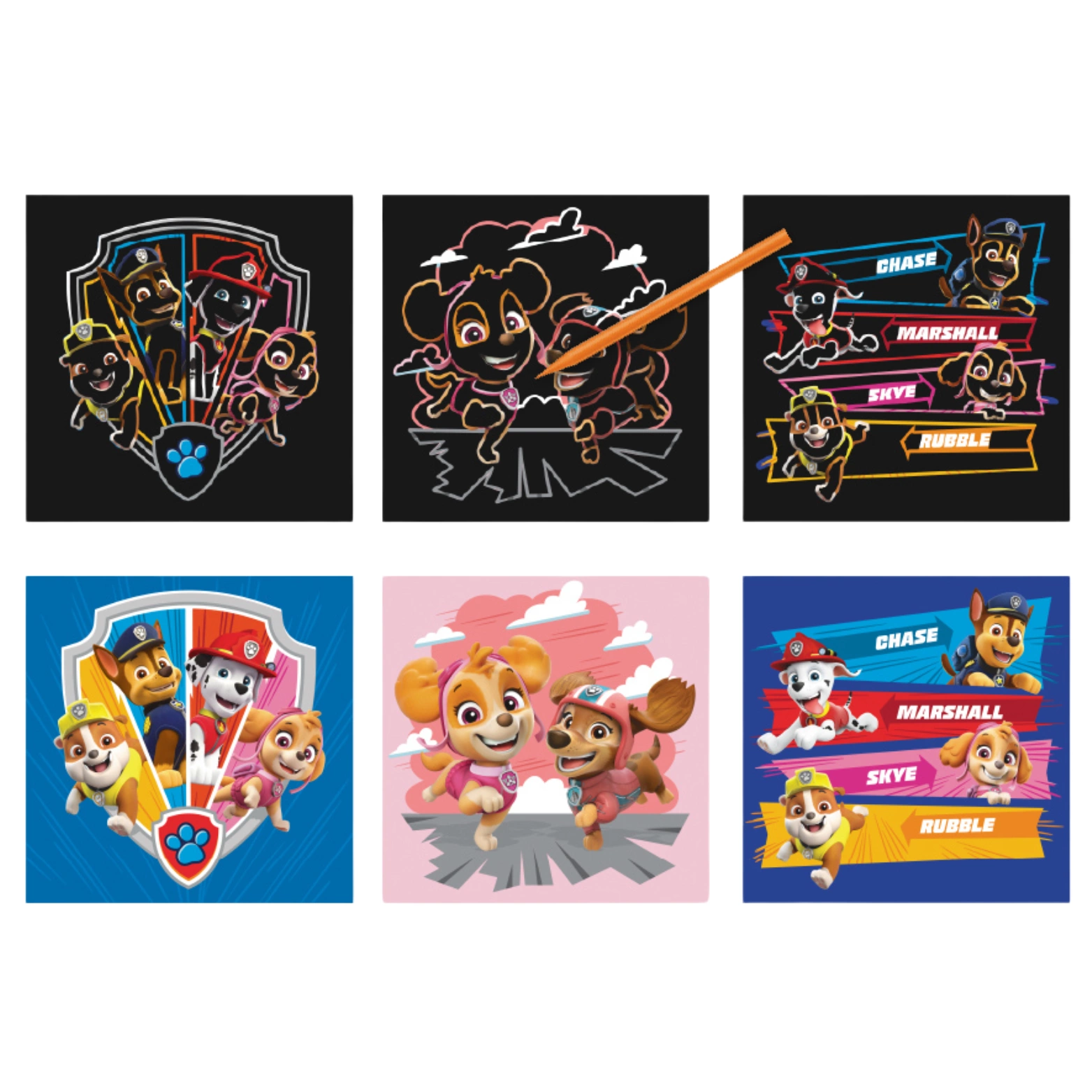 Metoda scratch pozwala dzieciom odkrywać magiczne obrazy ukryte pod czarną powierzchnią. W zestawie znajduje się specjalny długopis, którym maluchy mogą zdrapywać czarną warstwę, ukazując kolorowe postacie i sceny z ulubionej bajki "Psi Patrol".