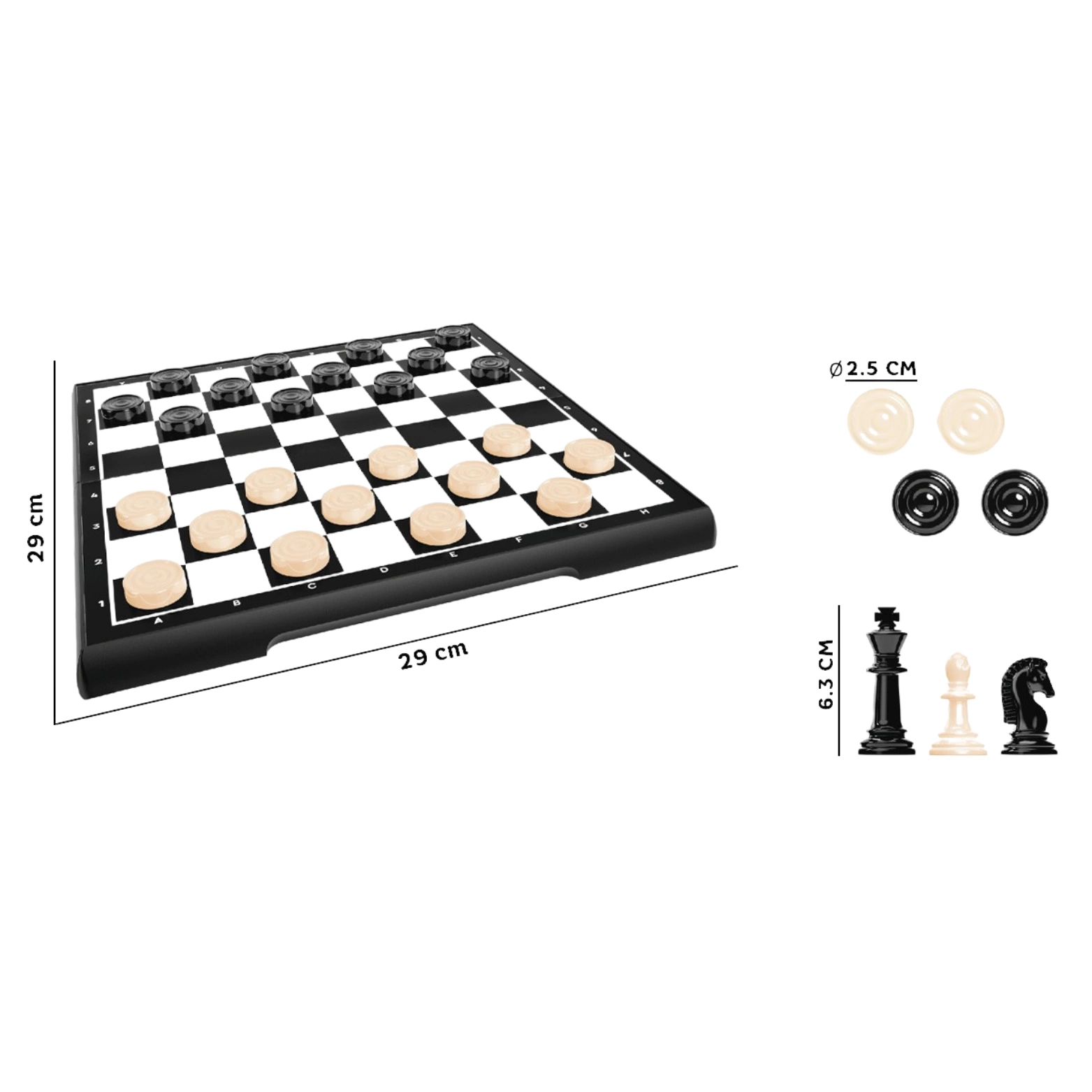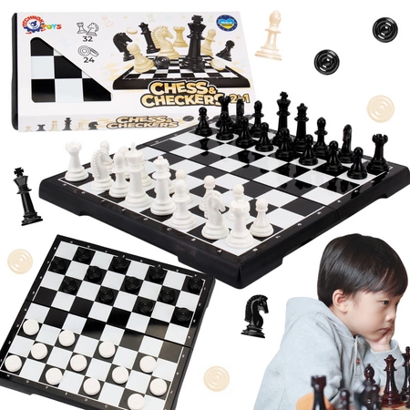 Wielofunkcyjność: zestaw 2w1 to połączenie dwóch klasycznych gier - szachów i warcabów. Dzięki temu dzieci mają możliwość wyboru między dwoma różnymi grami, co sprawia, że rozrywka staje się bardziej różnorodna i interesująca.