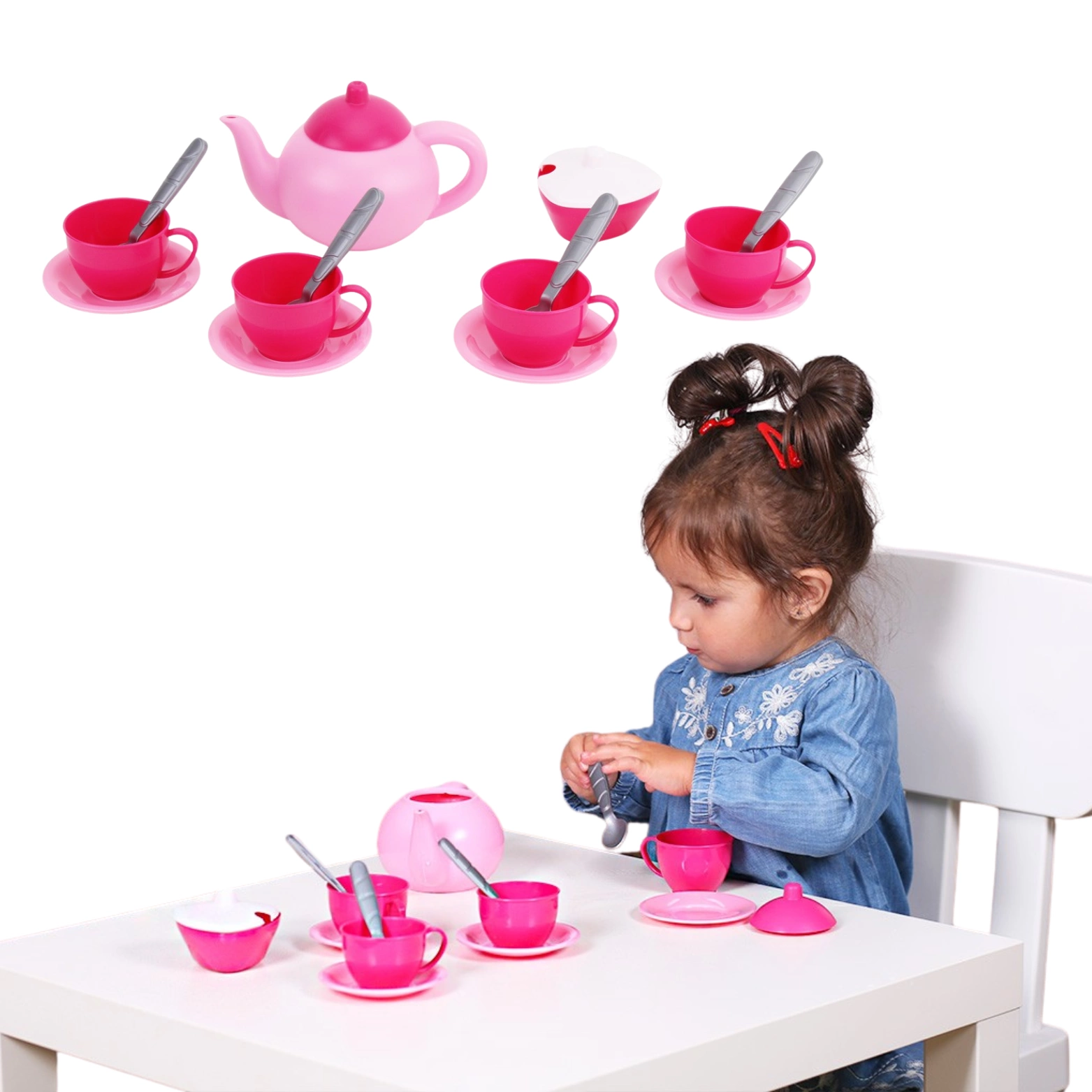 Zestaw zawiera wszystko co niezbędne na przyjęcie herbaciane. Dzbanek, filiżanki, talerzyki, cukierniczkę i łyżeczki wykonane zostały z wysokiej jakości materiałów, dzięki czemu zabawa będzie całkowicie bezpieczna i długotrwała. Precyzyjne wykonanie doda realizmu i uatrakcyjni każdą zabawę.