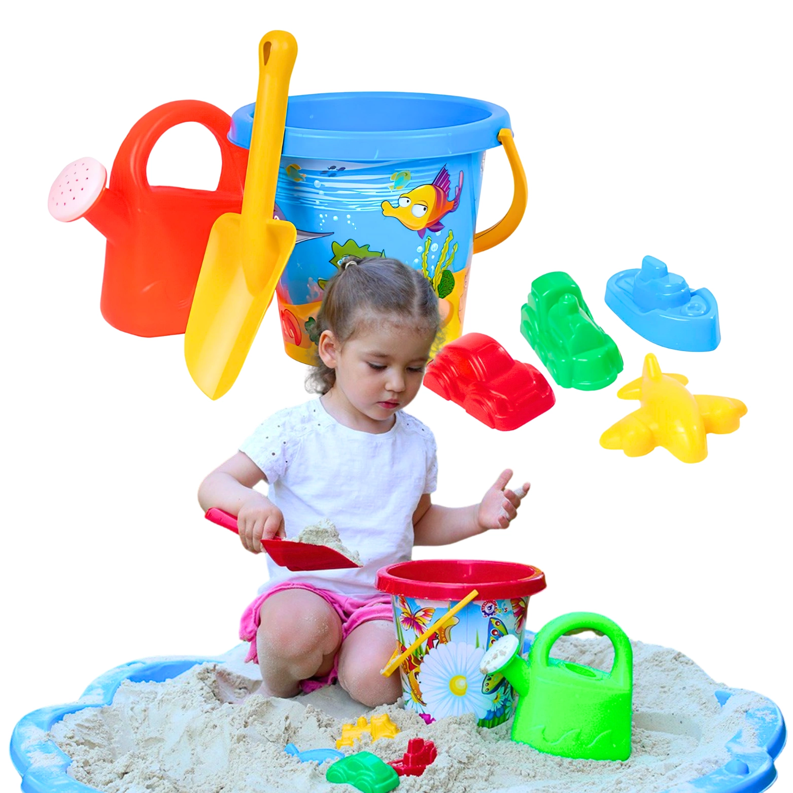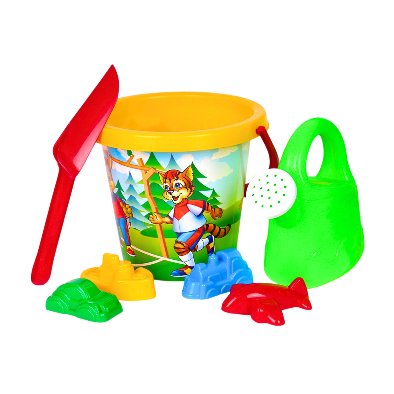 Zabawki wykonane z najwyższej jakości tworzyw, przetrwają wszelkie warunki oraz zapewnią bezpieczeństwo w użytkowaniu. Obrazek na wiaderku nadrukowany został przy użyciu specjalnej techniki IML, dzięki której rysunek jest nie do zdarcia i odporny nawet na wodę. W zestawie dołączone są foremki w różnych kształtach, łopatka oraz konewka.